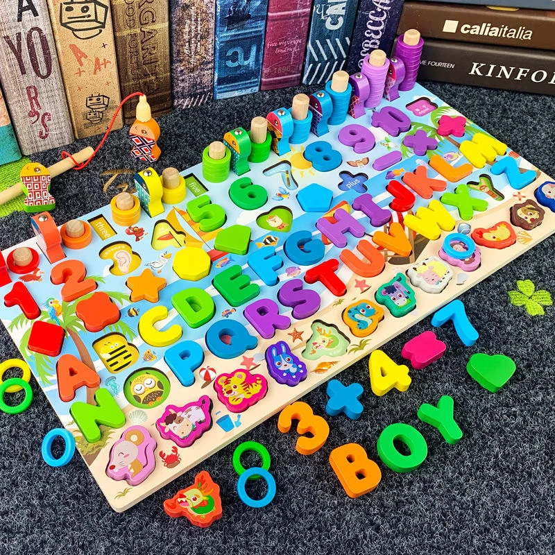 Детские игрушки Монтессори, Развивающие деревянные игрушки, геометрическая форма, познавательная головоломка, игрушки для математики, Игрушки для раннего развития для детей
