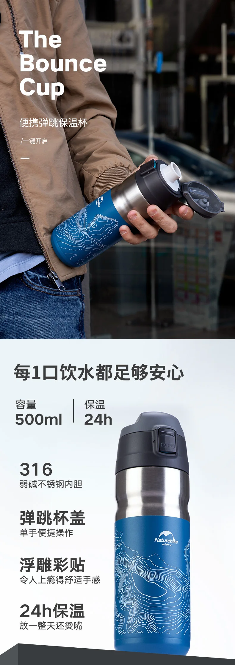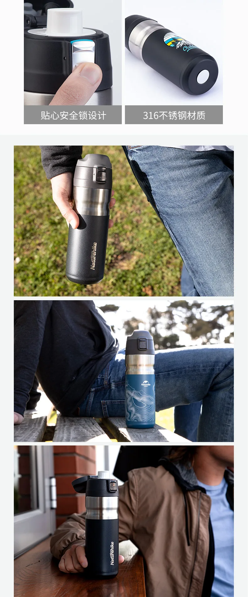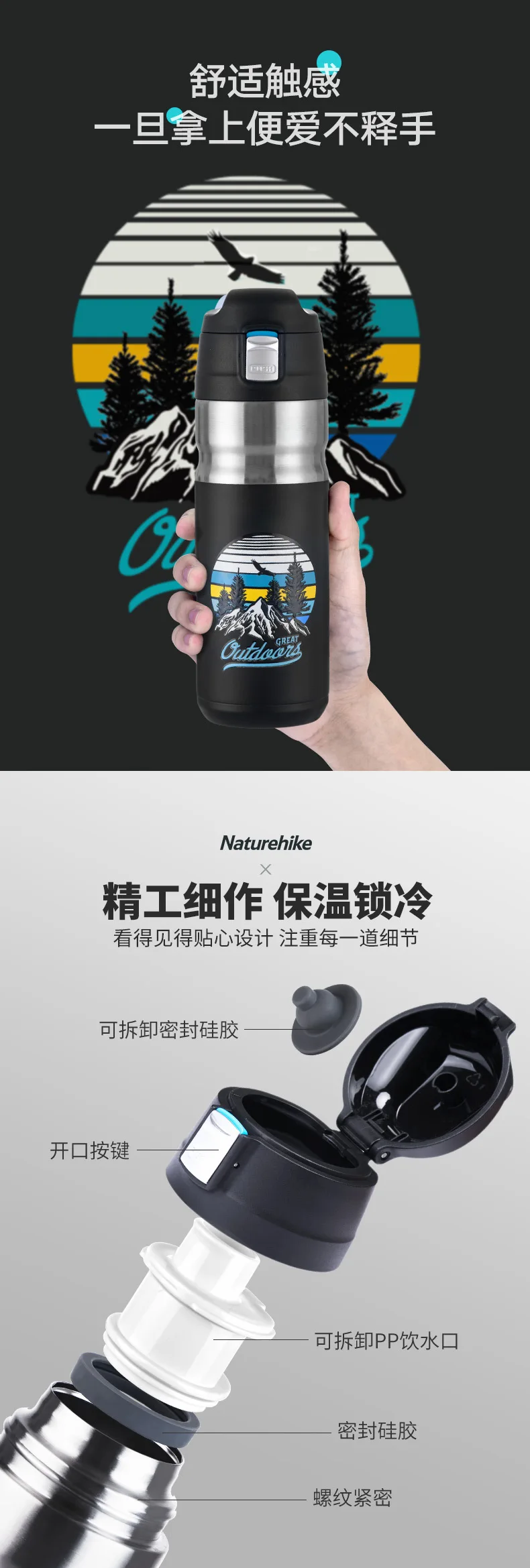 Портативная бутылка для воды Naturehike 500 мл, термос из нержавеющей стали 316, вместительная уличная чашка с отскоком для Бутылка для путешествий и занятий спортом