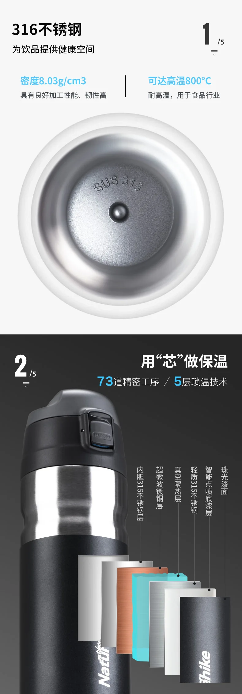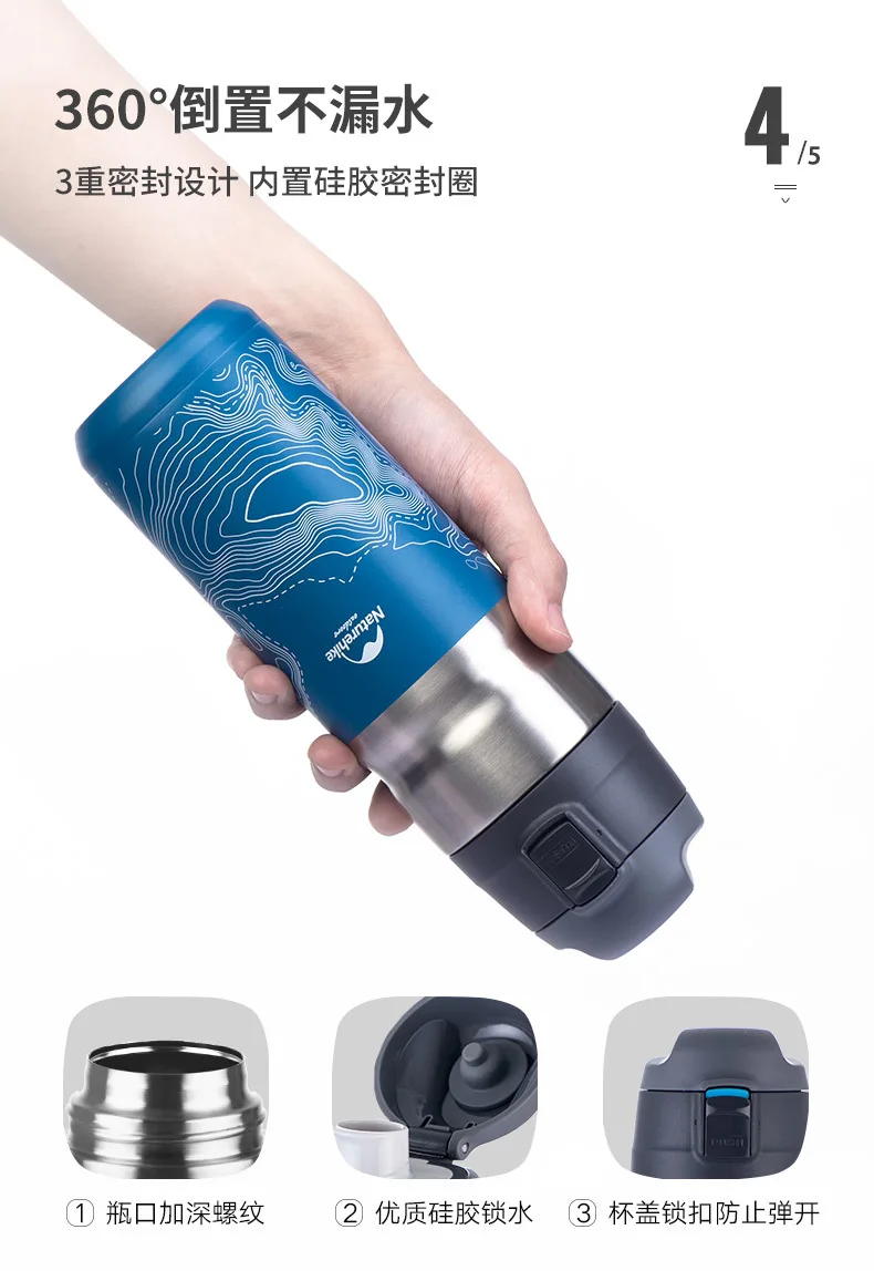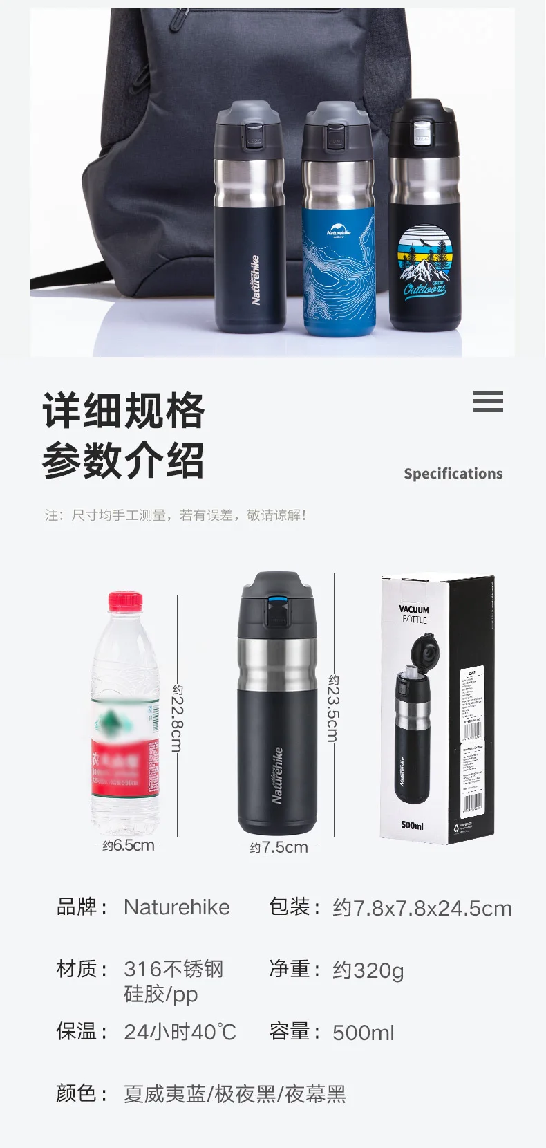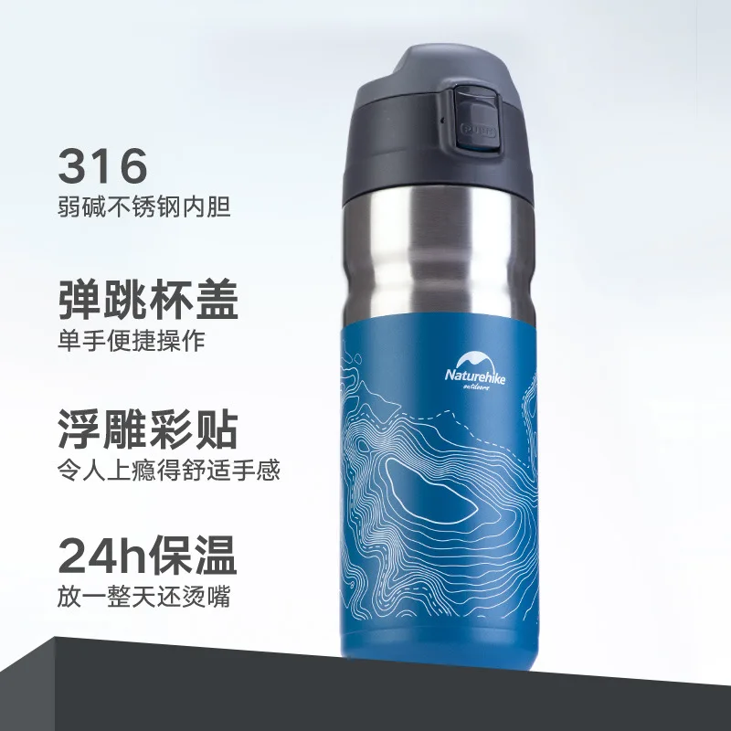 Портативная бутылка для воды Naturehike 500 мл, термос из нержавеющей стали 316, вместительная уличная чашка с отскоком для Бутылка для путешествий и занятий спортом