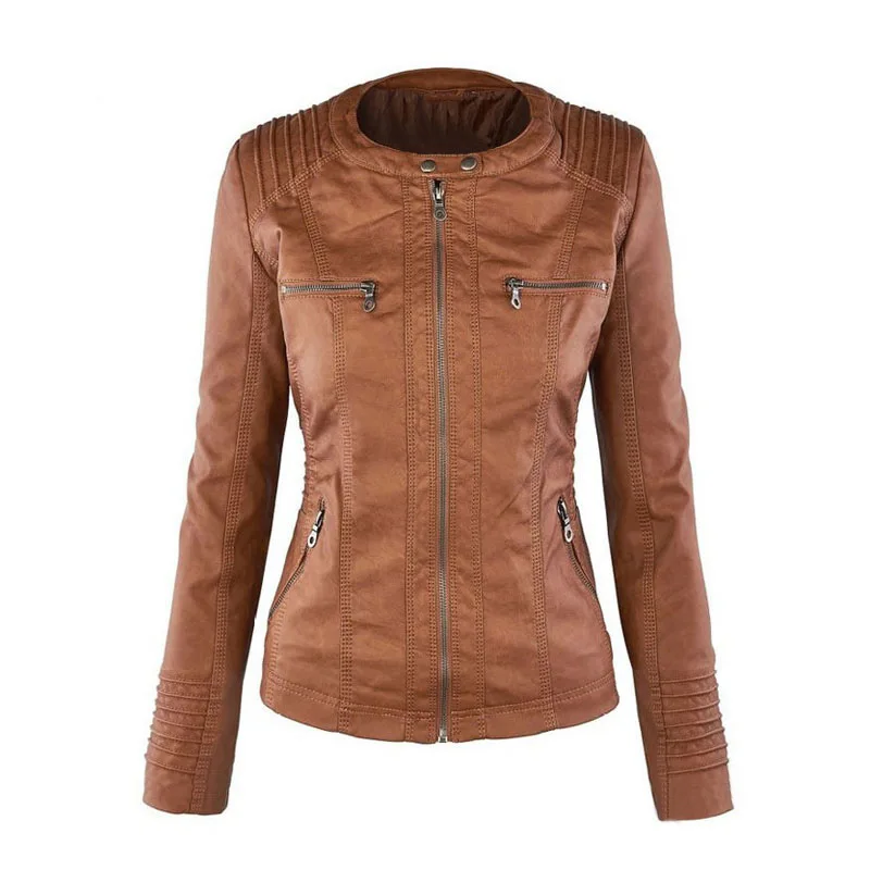Женская ветрозащитная куртка из ПУ кожи, с длинным рукавом и карманами