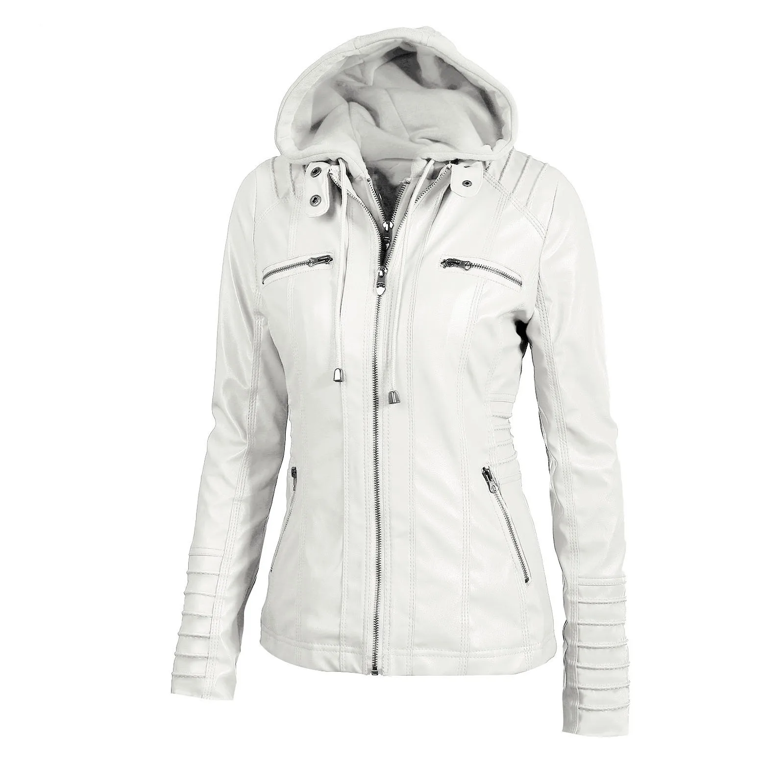 Женское повседневное пальто из ПУ кожи, на молнии, с капюшоном