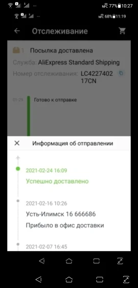 прождал 1,5 месяца и пишут что заказ выполнен, я начинаю разбираться и выясняется что заказ отправлен в Усть Илимск Иркутской области и кому-то там вручён а я проживаю в Липецке но для китайских товарищей это одно и тоже вроде как и нет 6 т.км между нашими городами, на сообщения не отвечает, открыл спор и АлиЭкспресс долго не мог понять чего я хочу ведь товар вручён, но всё таки нашёлся у них один умный товарищ и деньги вернули через 2 недели спора !