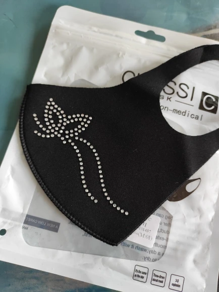 Маска для лица с блестками для мужчин и женщин, моющаяся многоразовая Удобная тканевая регулируемая, с дымкой, черная, 1 шт.