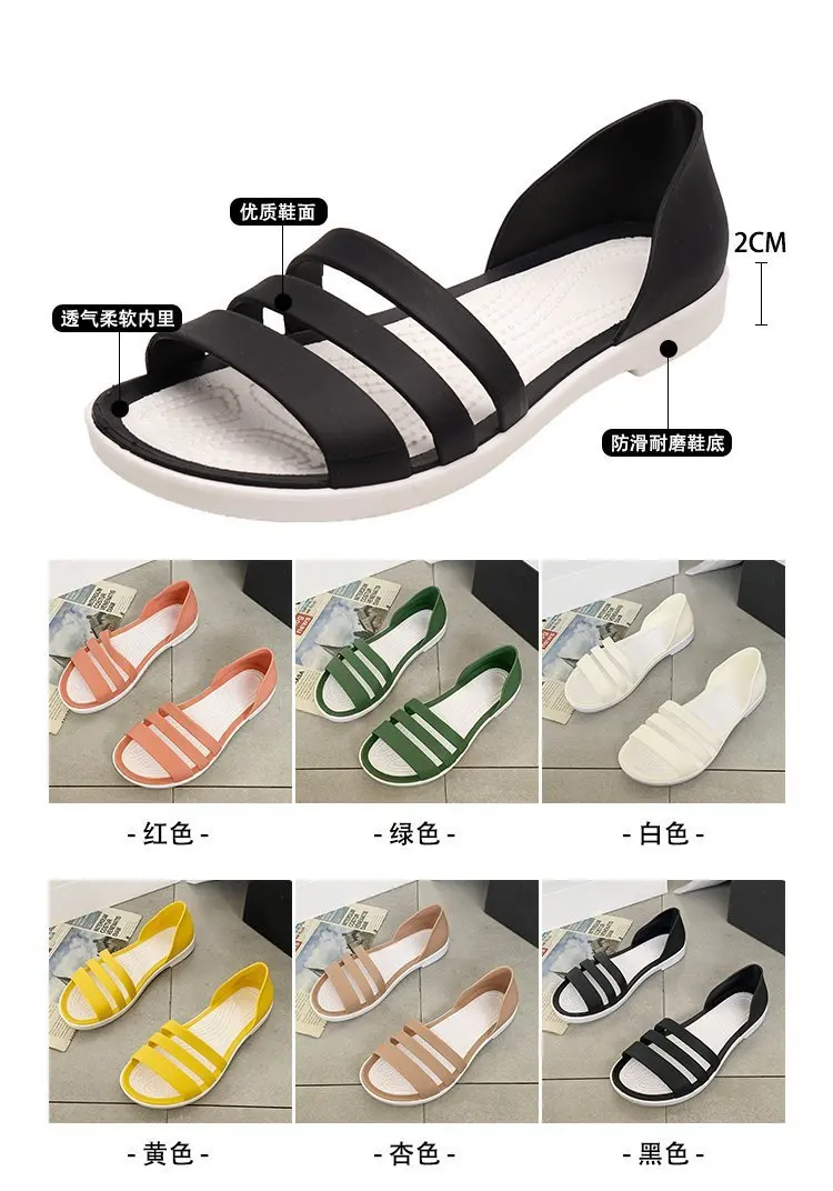 Сандалии-желе женские на плоской подошве, пляжные шлепанцы, без зас...