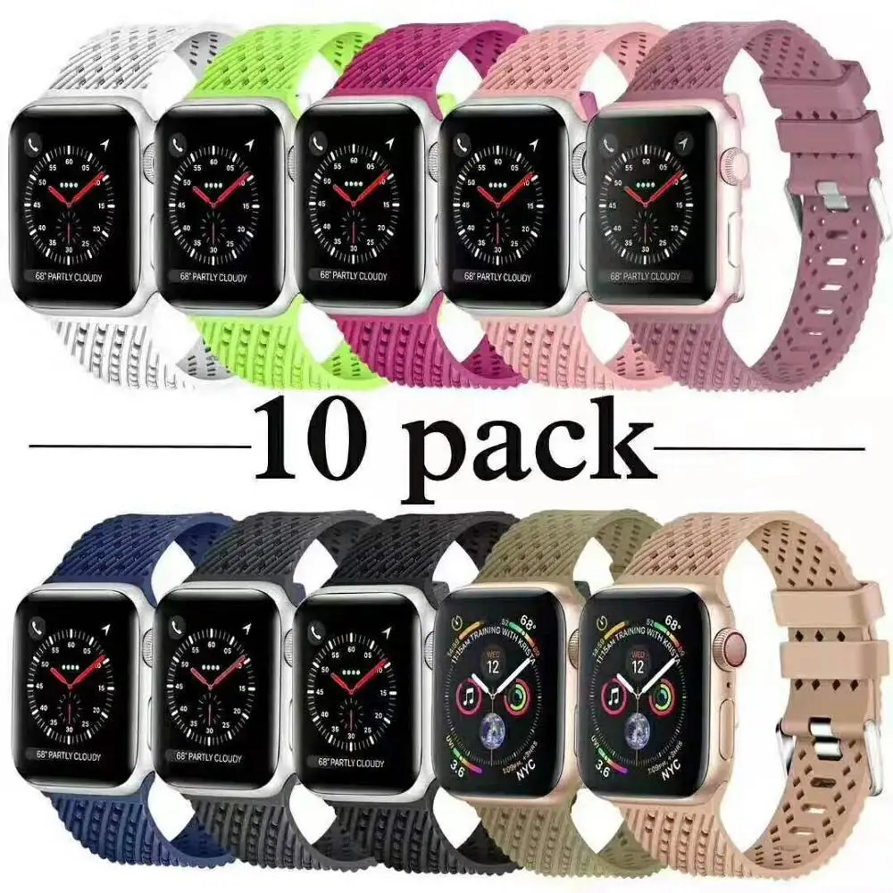 Ремешок для часов Apple Watch Series 5, 4, 3, 2, 6, SE, 38 мм, 42 мм, дышащий спортивный ремешок для iWatch Мягкая силиконовая лента, 38, 40 мм, 42, 44 мм, 45