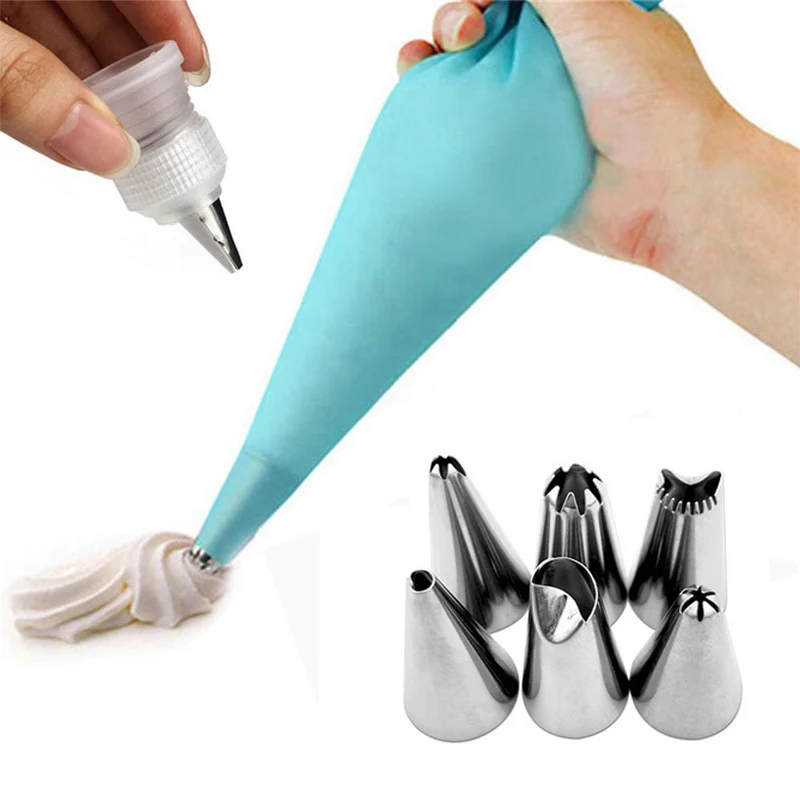 Силиконовая глазурь трубопровод Крем кондитерский мешок + 6 Нержавеющая сталь насадка для декорирования торта насадки для украшения тортов «сделай сам» помадка, кондитерские изделия инструмент