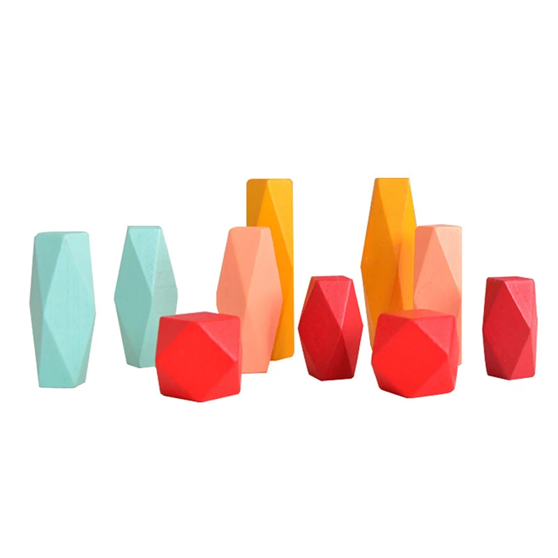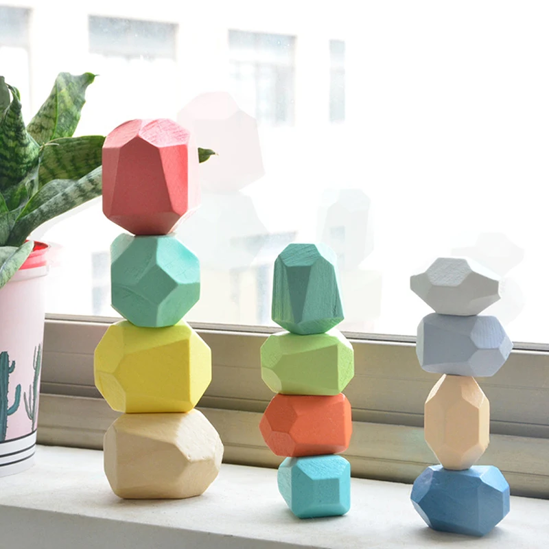 HX5D 10 шт. детский деревянный цветной камень, Штабелируемая игра, ...