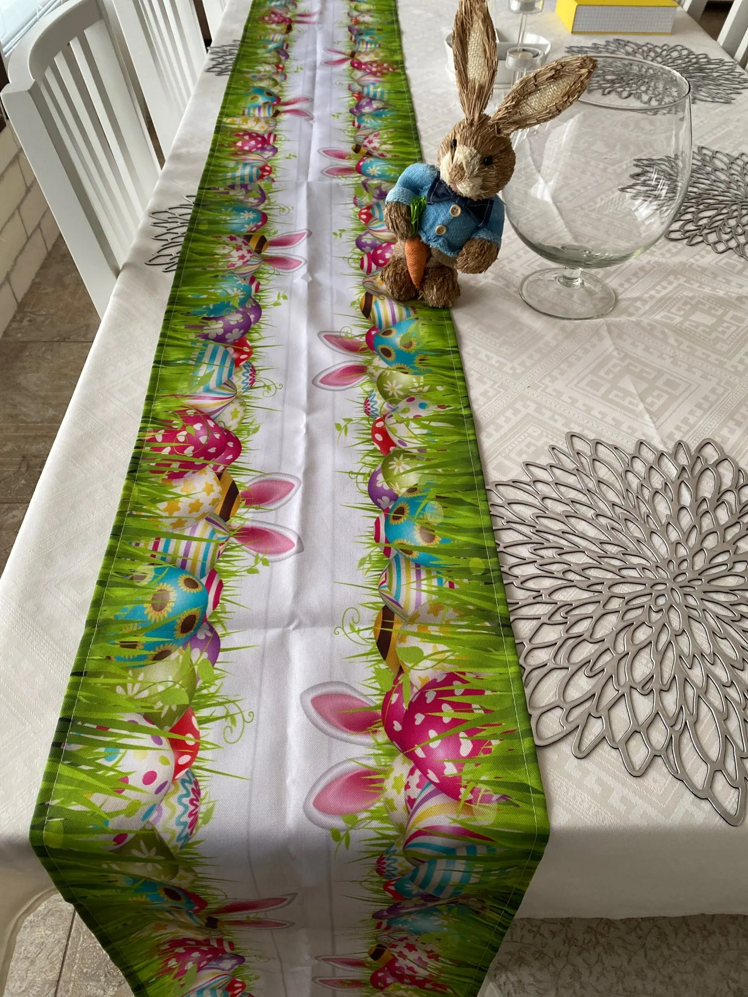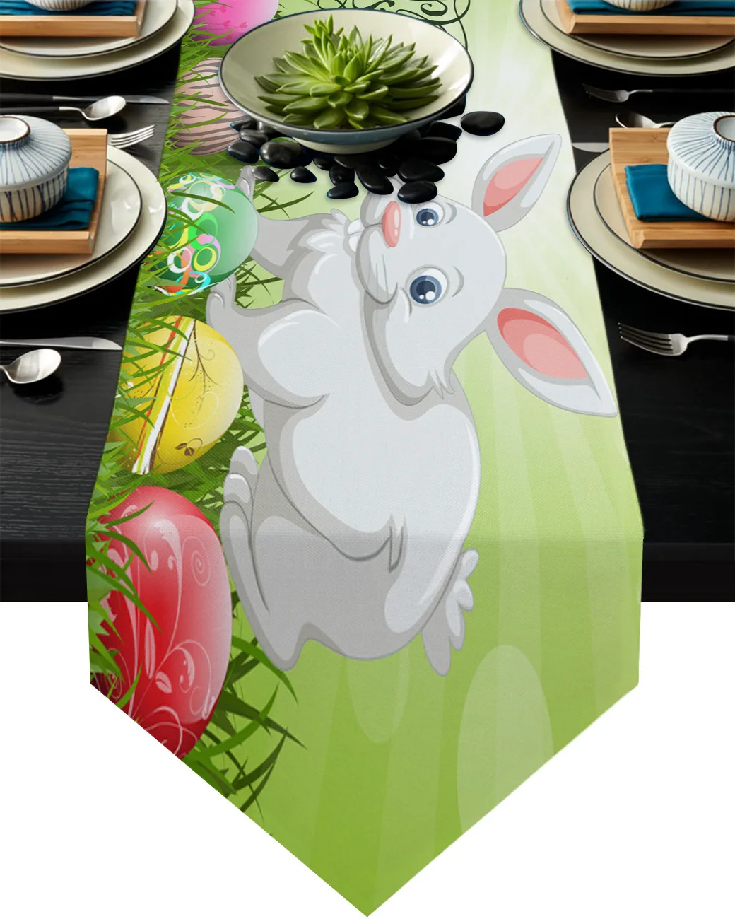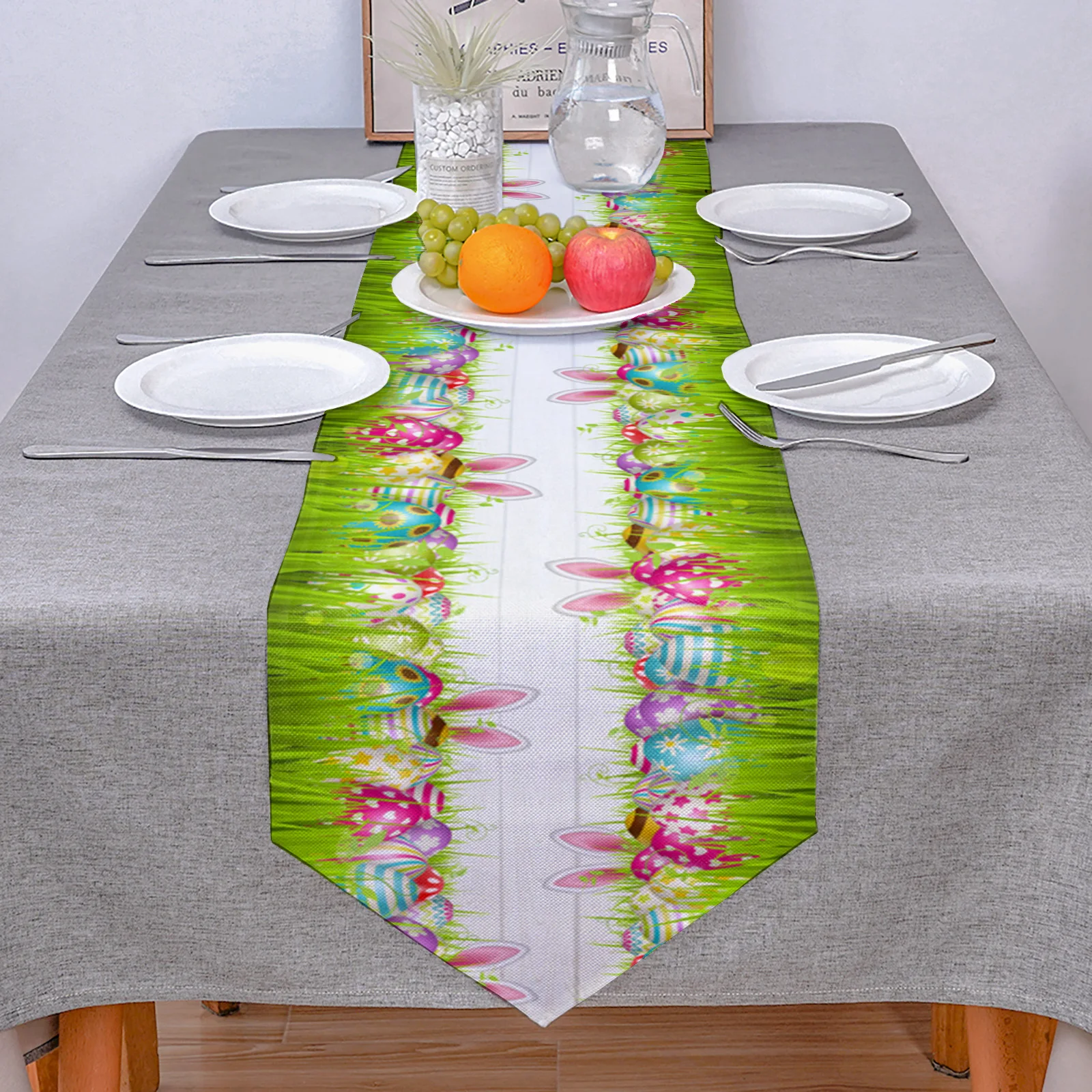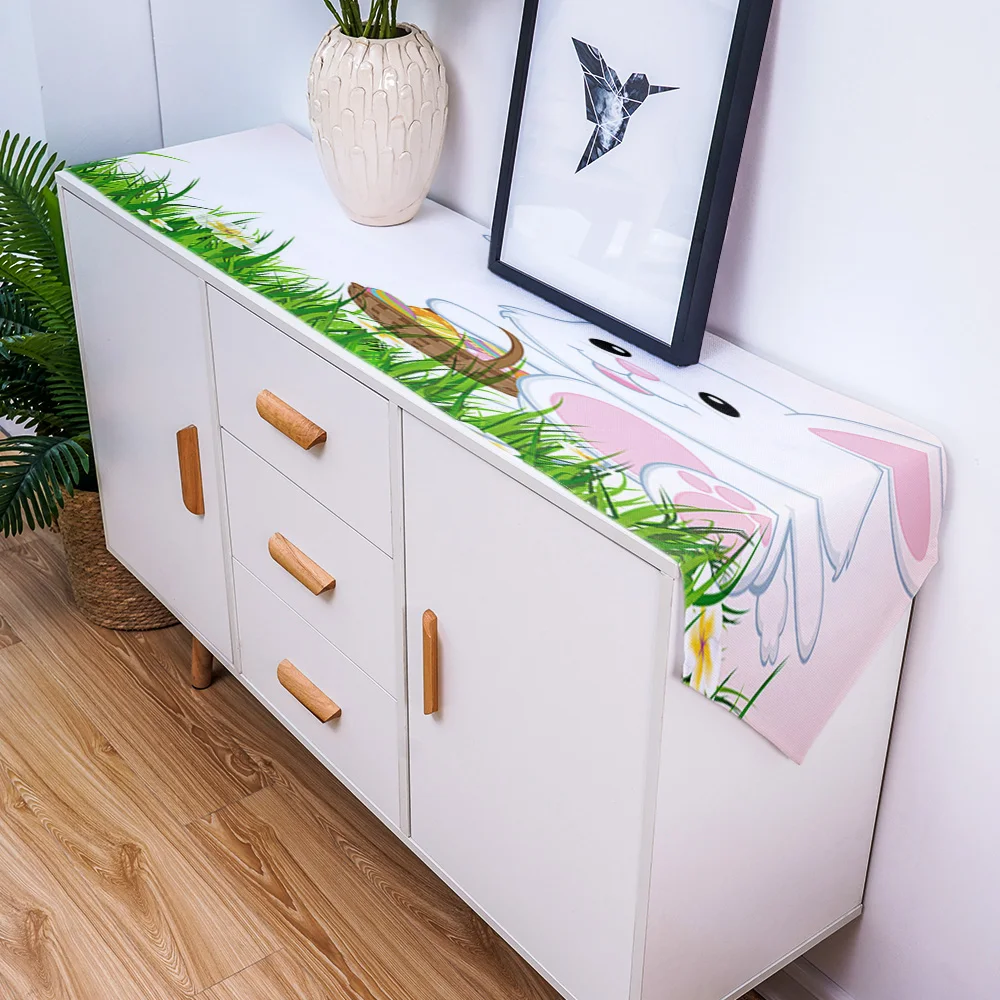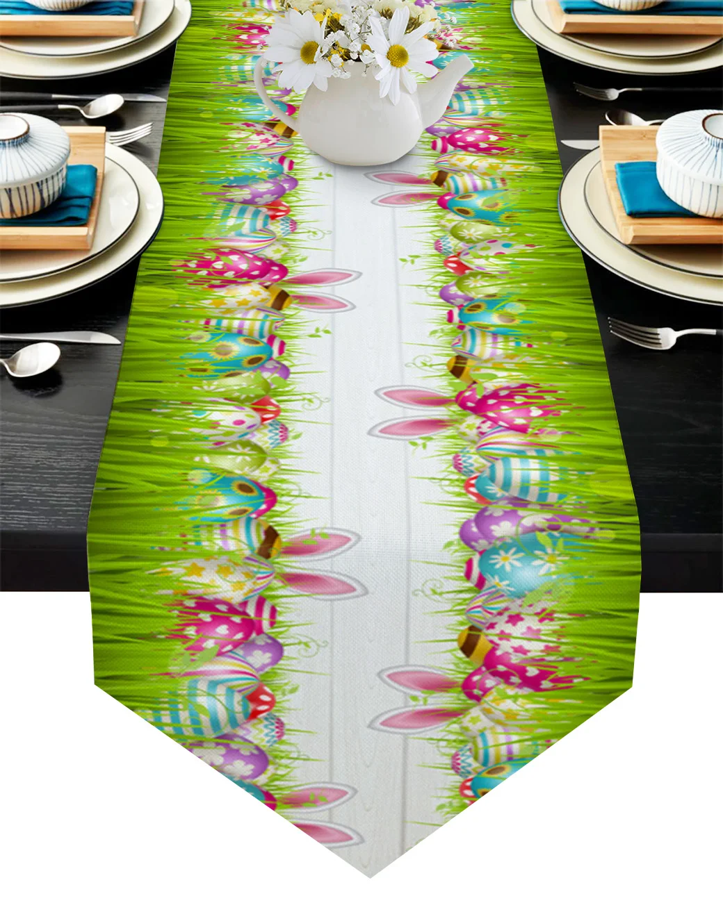 Пасхальные яйца, кроличьи ушки, трава, Настольная дорожка, Свадебный декор, скатерть для торта и салфетка, праздничный декор для стола, Настольная дорожка