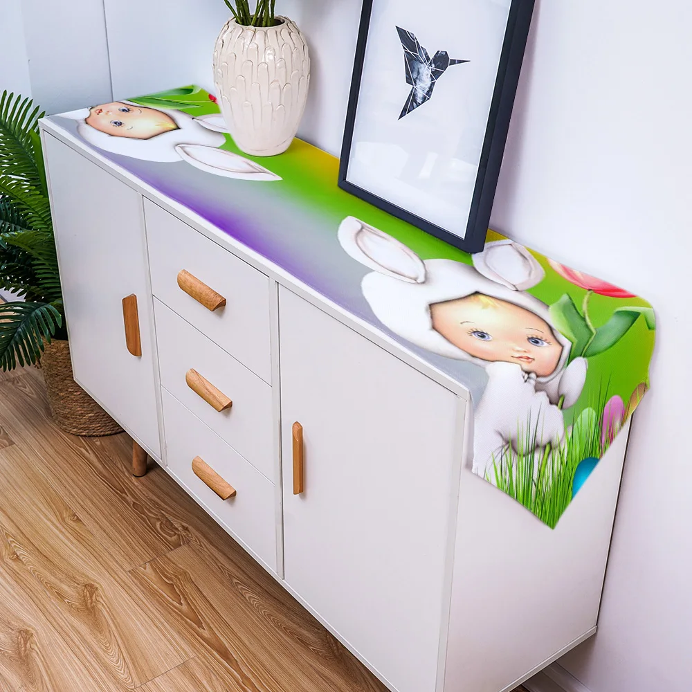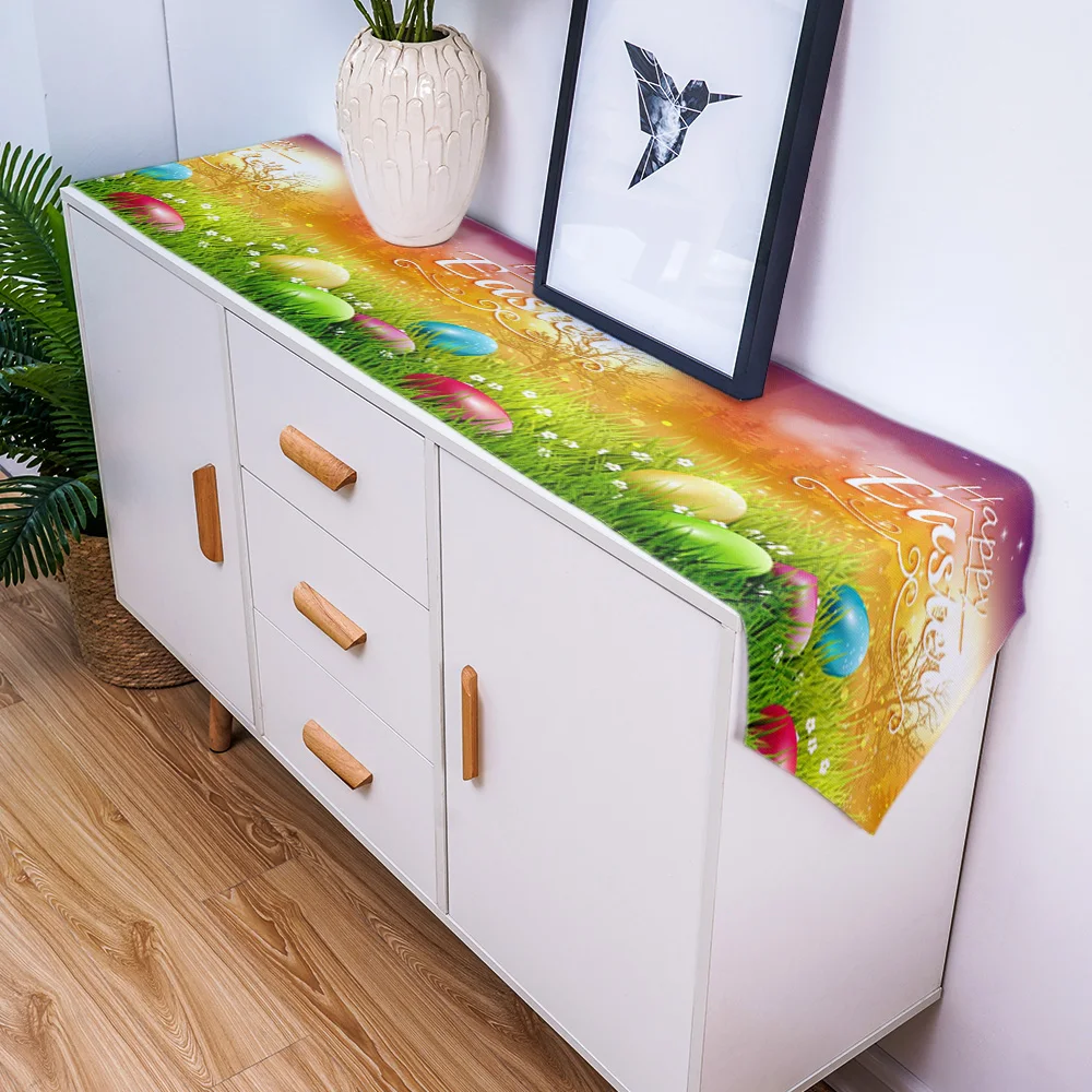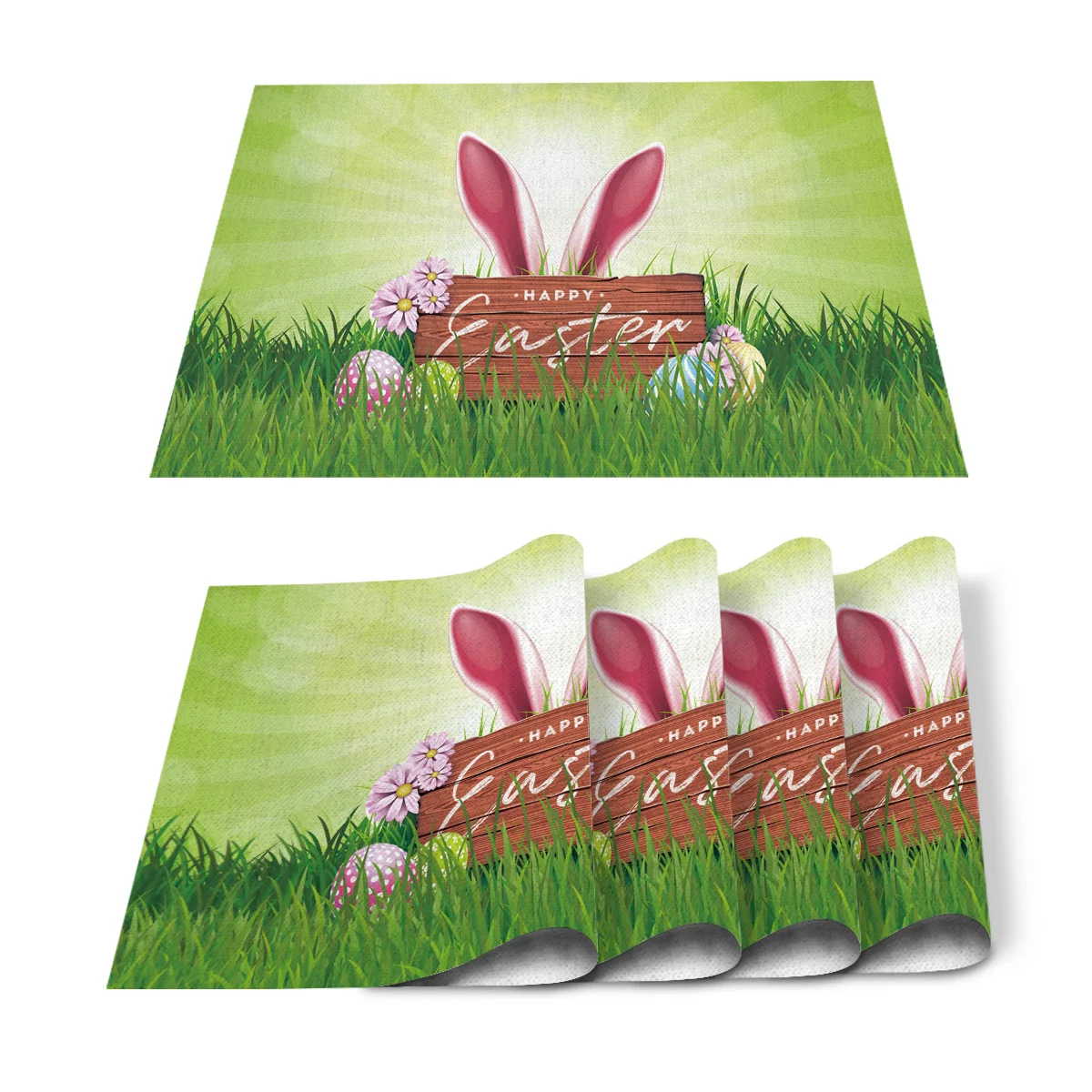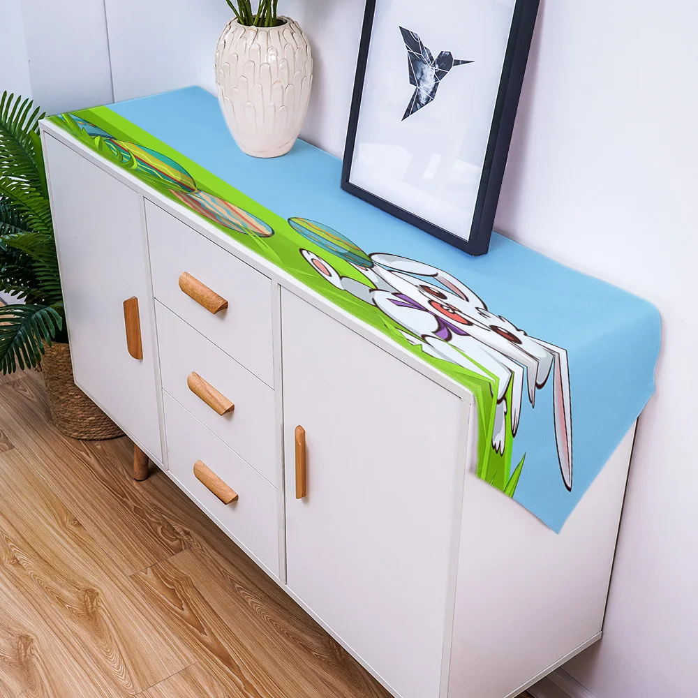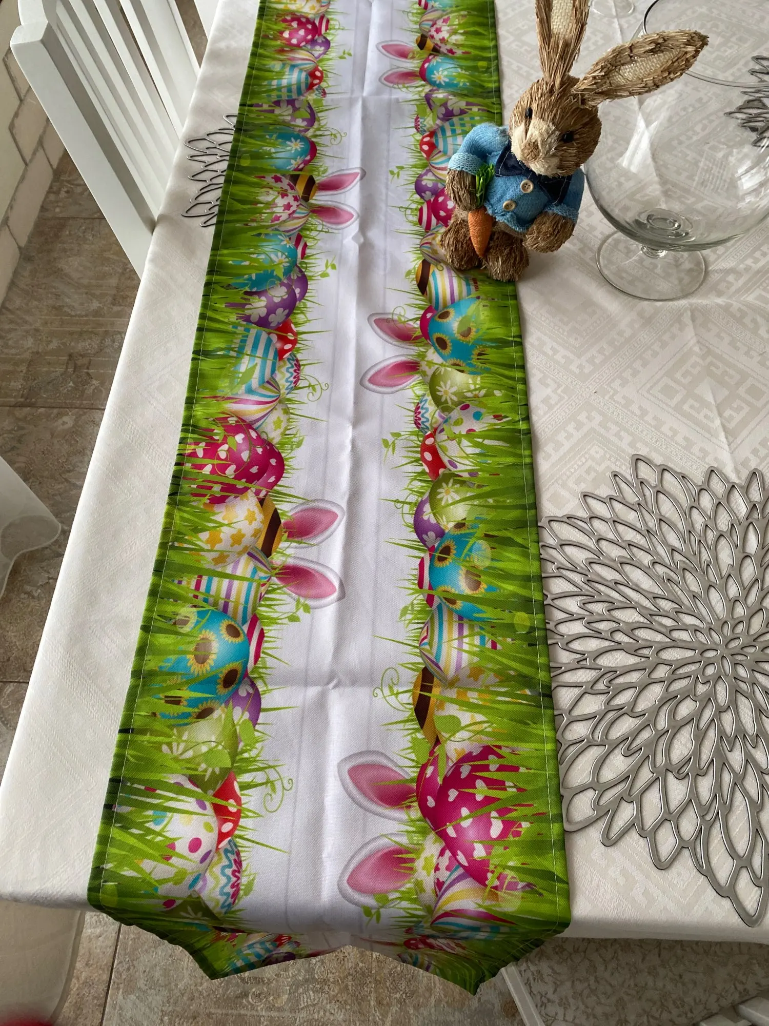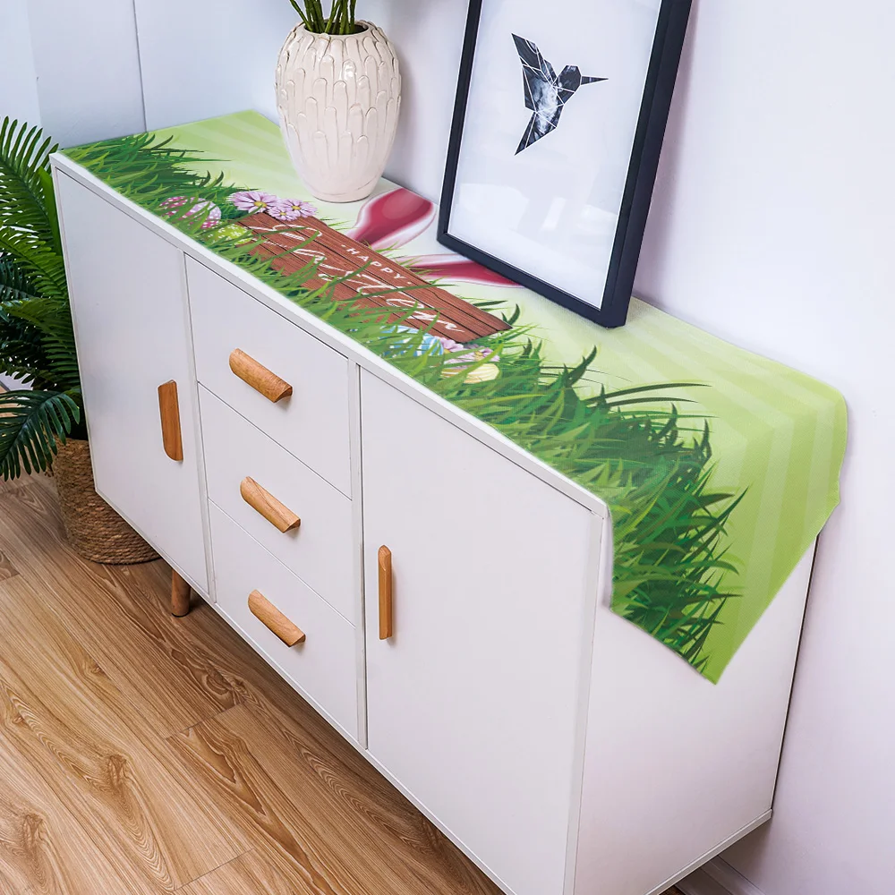 Пасхальные яйца, кроличьи ушки, трава, Настольная дорожка, Свадебный декор, скатерть для торта и салфетка, праздничный декор для стола, Настольная дорожка