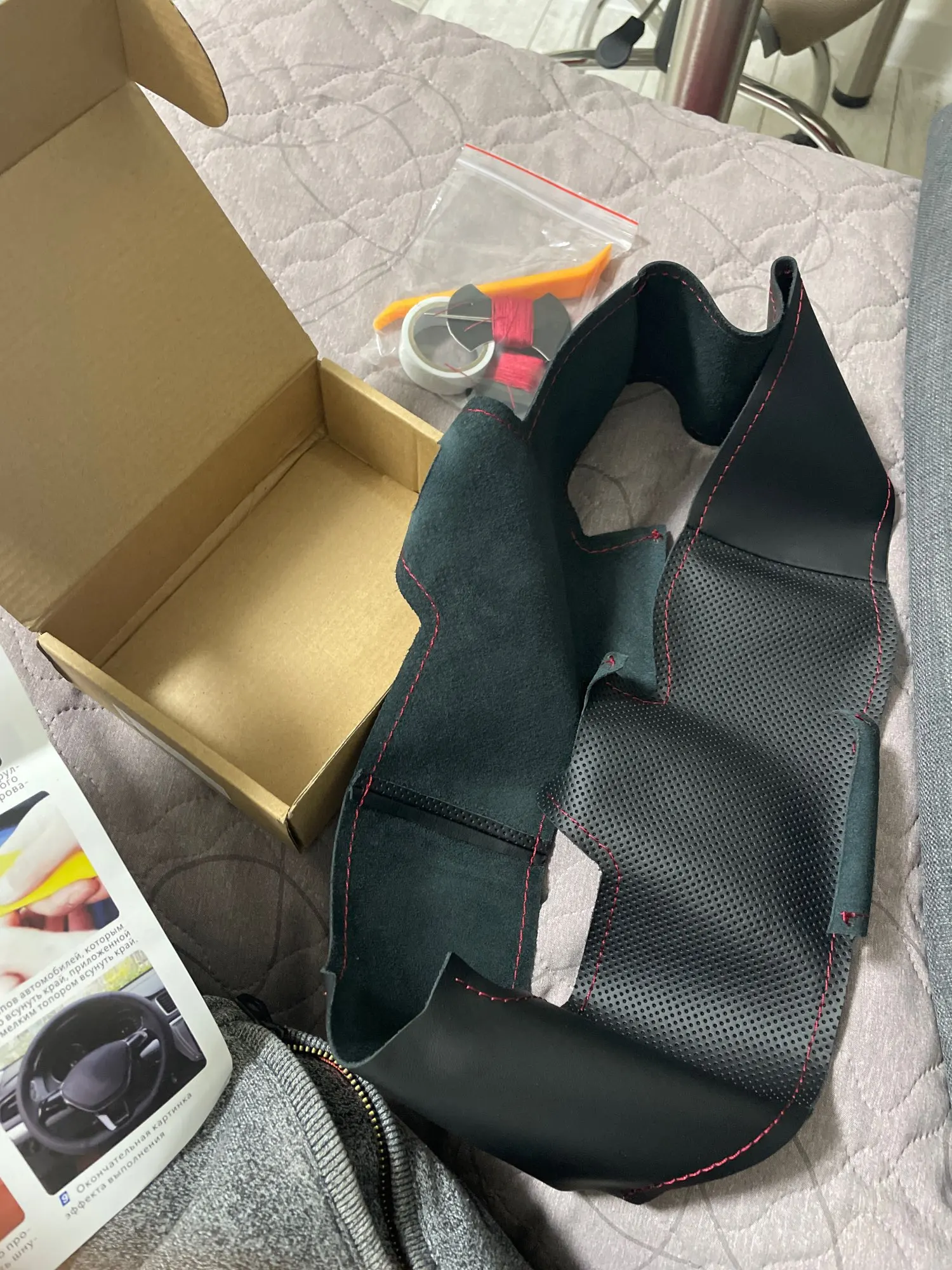 Сшитая вручную натуральная кожа черного цвета чехол рулевого колеса...