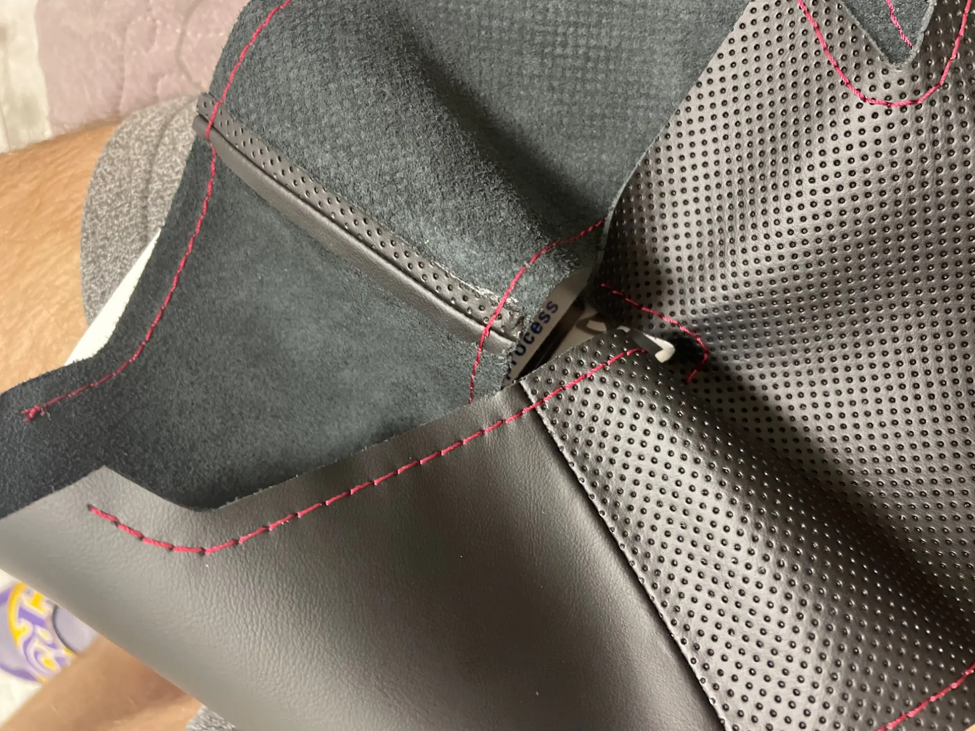 Сшитый вручную черный чехол рулевого колеса автомобиля из натуральн...