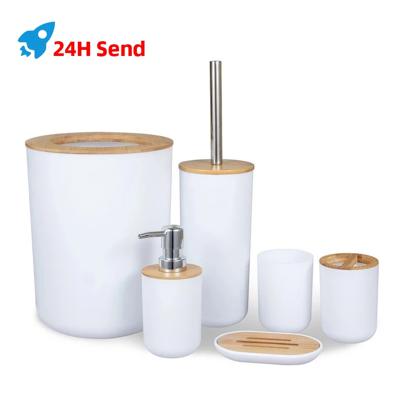 Набор аксессуаров для ванной комнаты, 6 шт., бамбуковый набор для комнаты, держатель для зубной щетки, диспенсер для мыла, туалетная щетка, мусорное ведро, набор для ванной комнаты