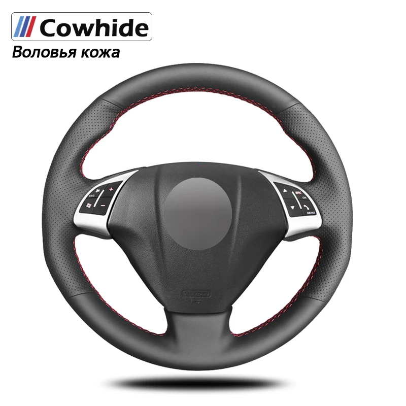 Прошитая вручную черная кожаная оплетка на руль для Mitsubishi Outl...