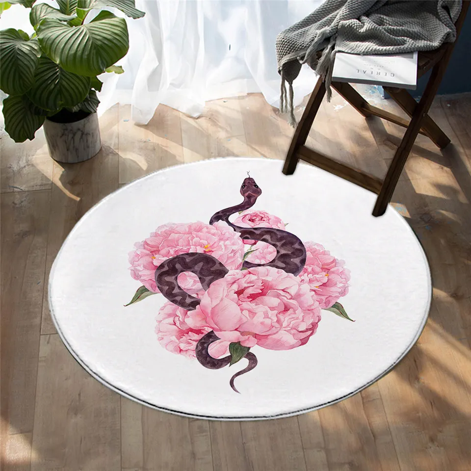 Постельное белье, Цветочный Змеиный Круглый ковер, розовый цветок, ковры для гостиной, животный коврик, полезная гирлянда, альфомбра 150 см