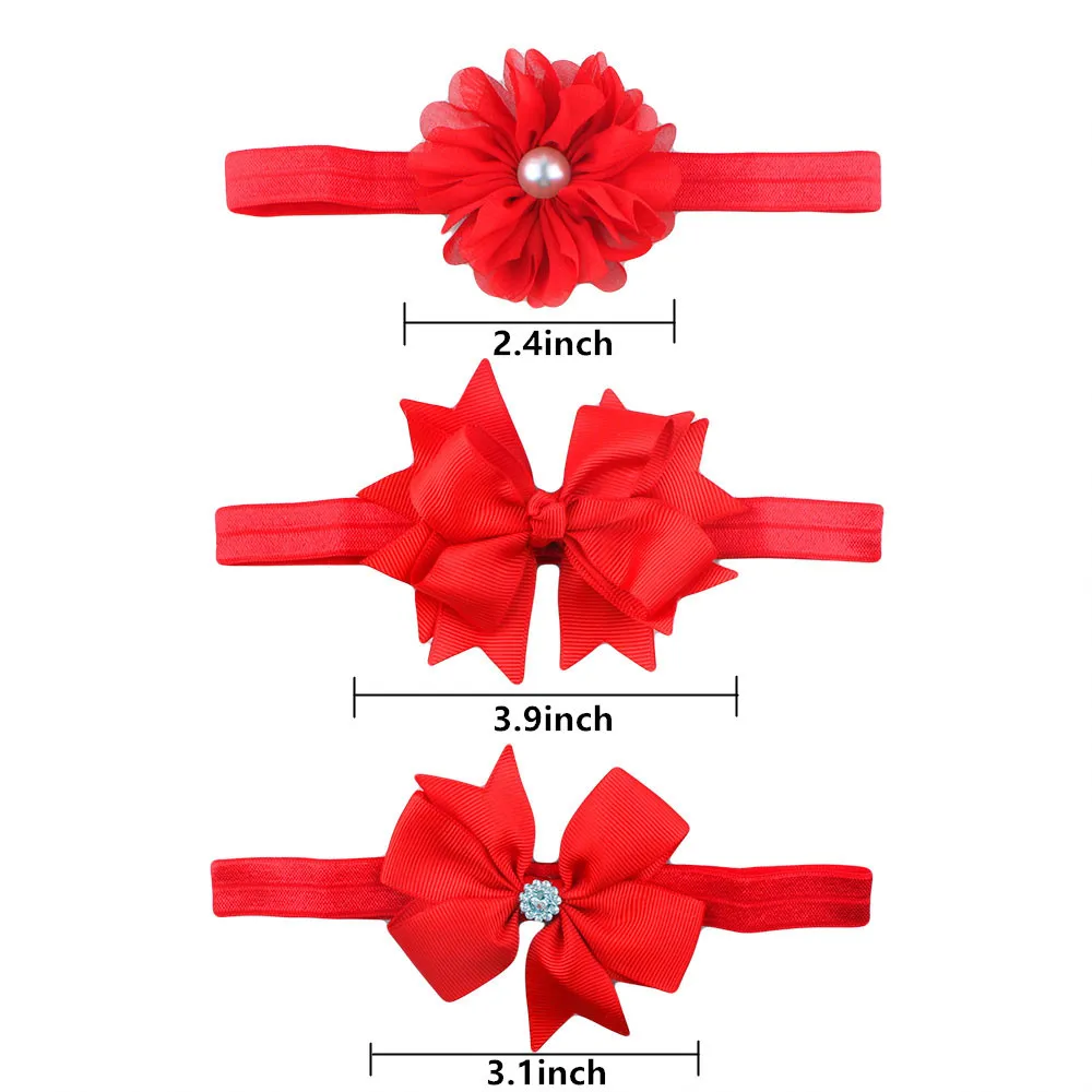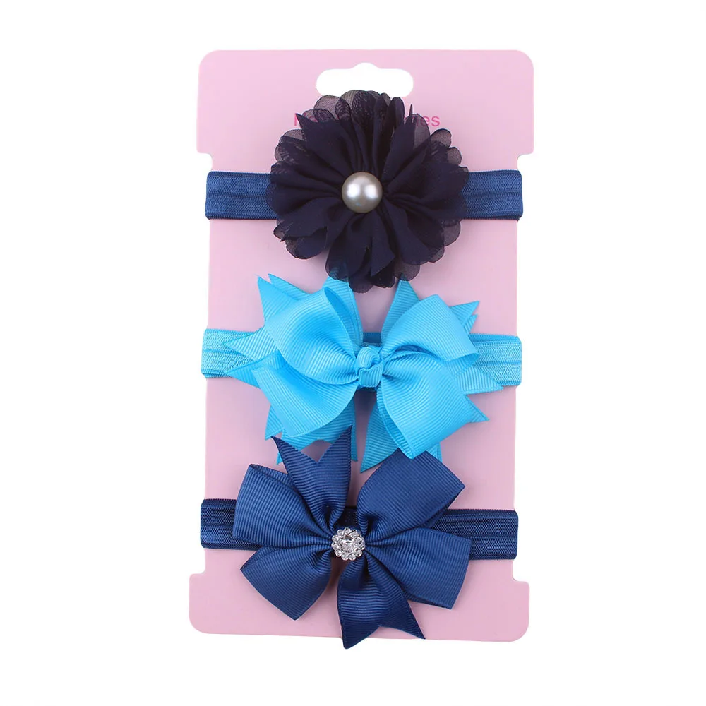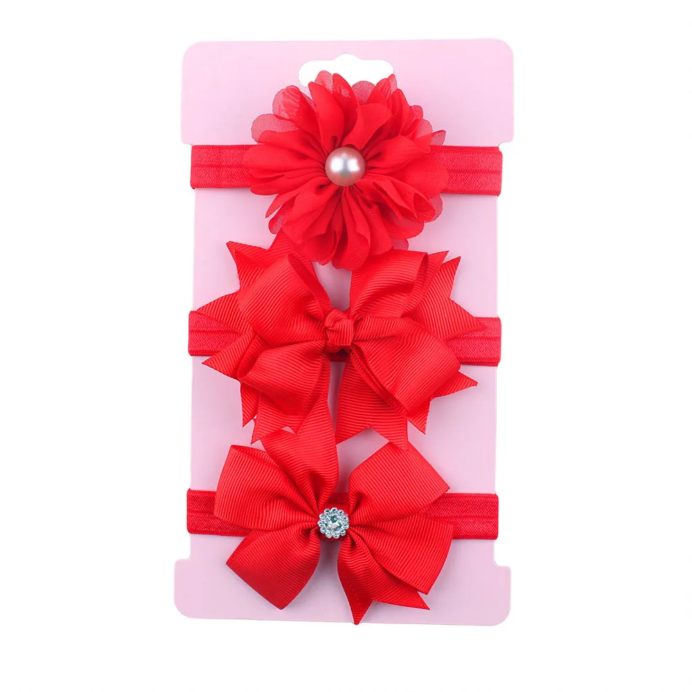 Мода 3 шт.лот с бантом из ленты на каблуке высотой; Повязка на голову из шифона с цветочным рисунком с жемчугом для новорожденных Hiarbands для девочек вечерние на день рождения повязка на голову