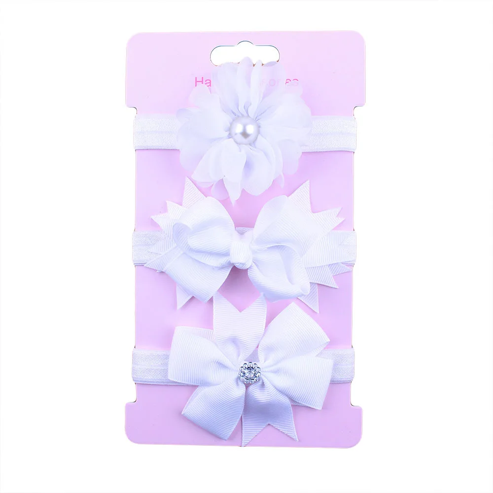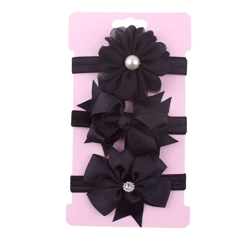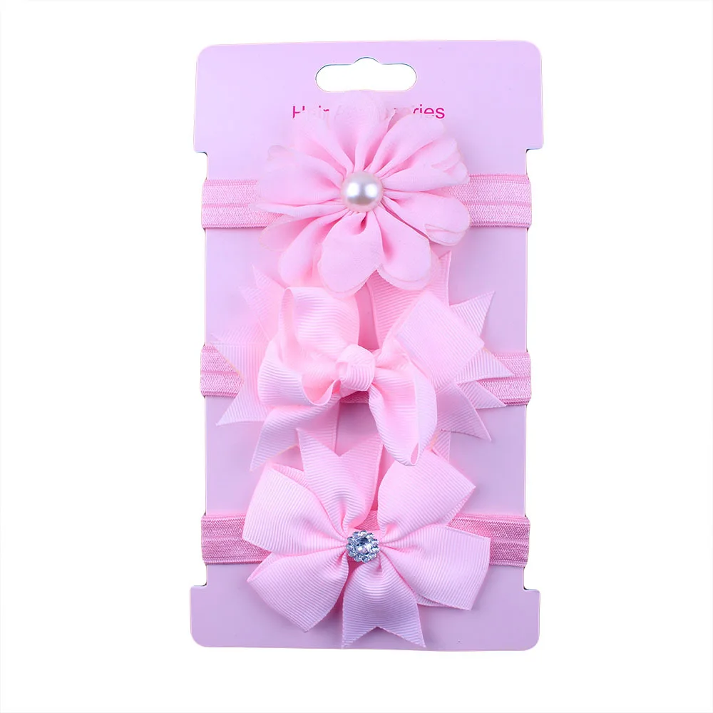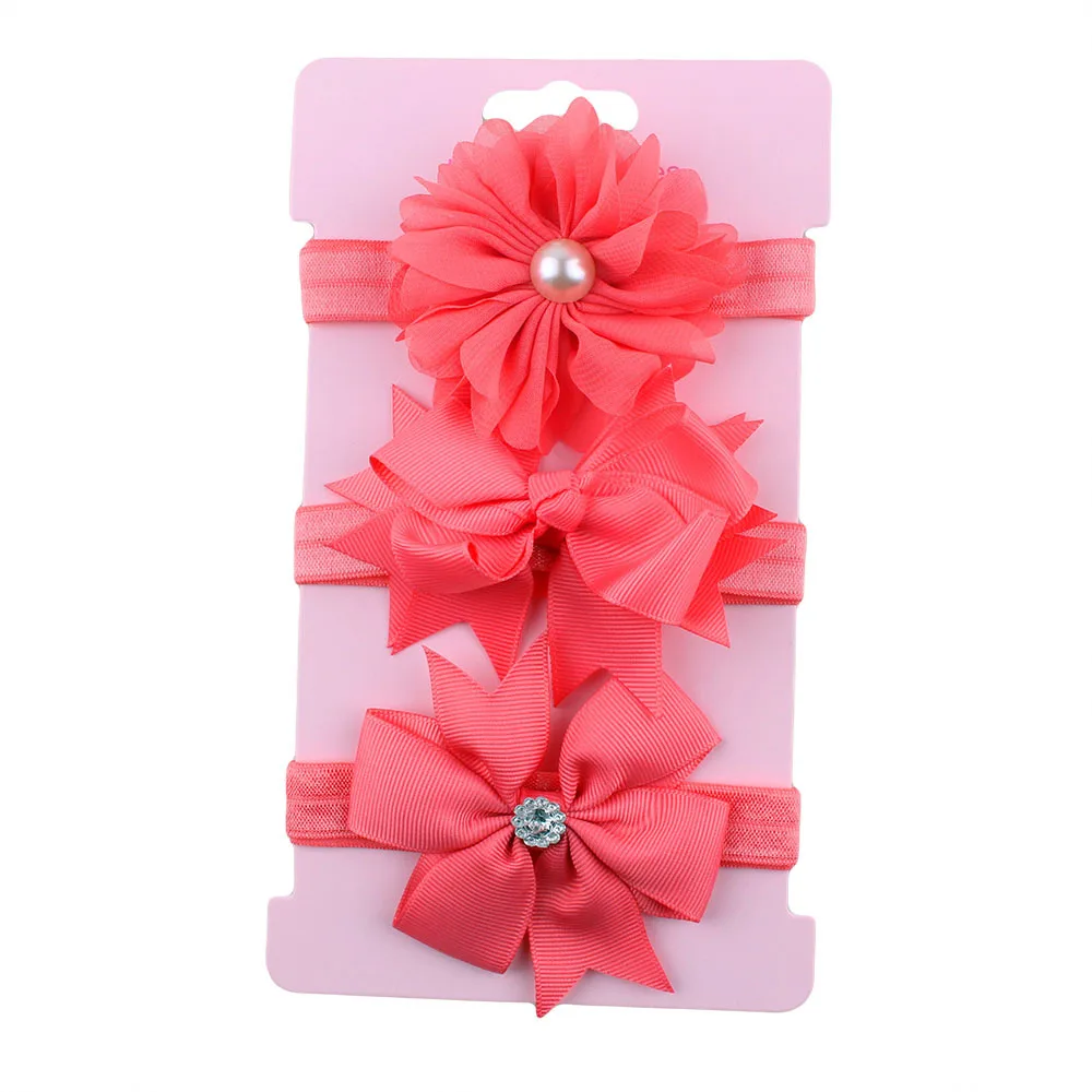 Мода 3 шт.лот с бантом из ленты на каблуке высотой; Повязка на голову из шифона с цветочным рисунком с жемчугом для новорожденных Hiarbands для девочек вечерние на день рождения повязка на голову