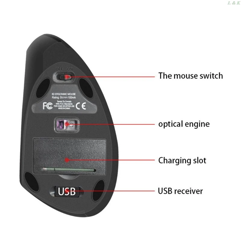 Левшей Мышь Перезаряжаемые эргономичная Вертикальная мышь с USB приемник для ПК 667C