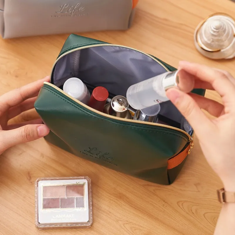 1 шт. однотонная косметичка для женщин, мягкая кожаная Водонепрониц...