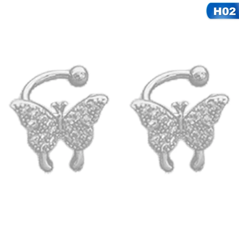 Серьги-клипсы в минималистическом стиле для женщин, изысканные блестящие серьги-бабочки без прокола в эстетике Kpop, ювелирные изделия