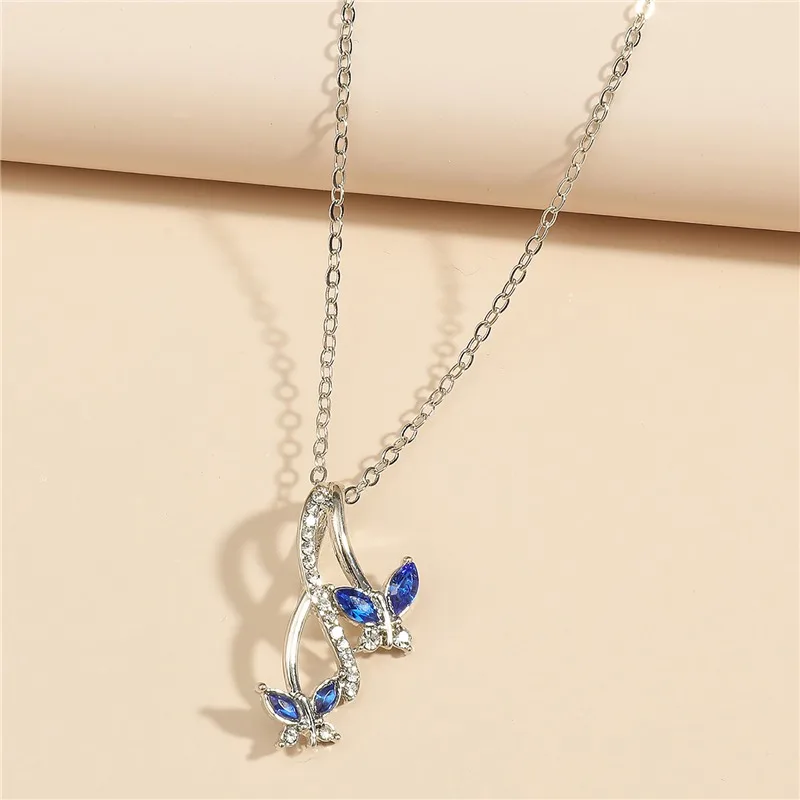 Ожерелье из титановой стали синяя фиолетовая бабочка простая трендо...