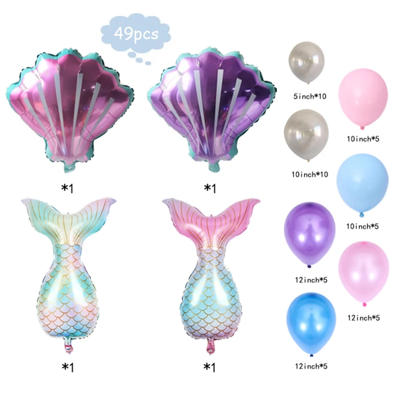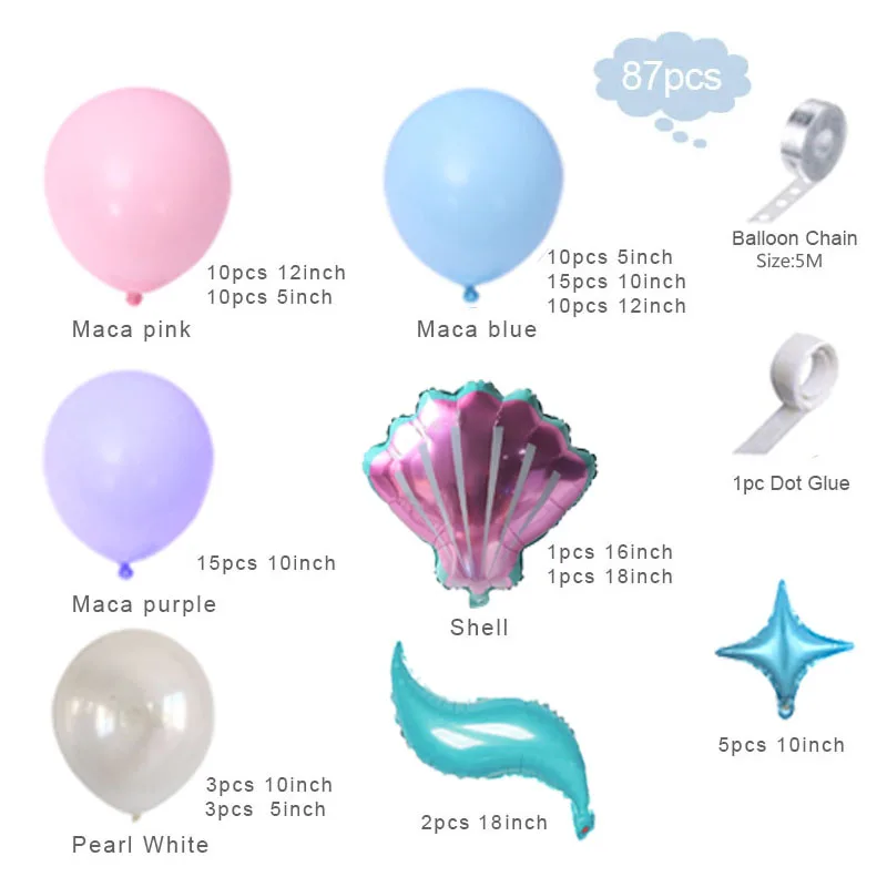 Воздушные шары с хвостом русалки, гирлянда, арка, тематическая вечеринка на день рождения, 87 шт.