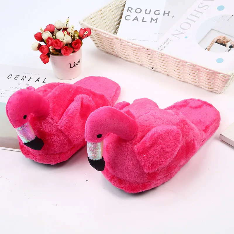 Зимние милые домашние тапочки, женские тапочки с фламинго, теплые х...