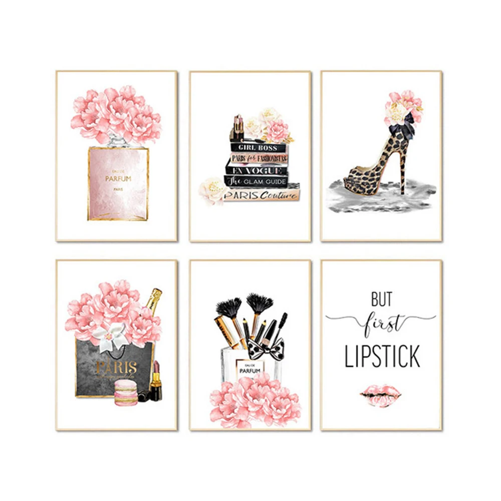 Модные настенные росписи искусства высоких каблуках с украшением в виде цветка алмазов картина Стразы мозаичная картина Макияж Салон красоты девушка декор комнаты