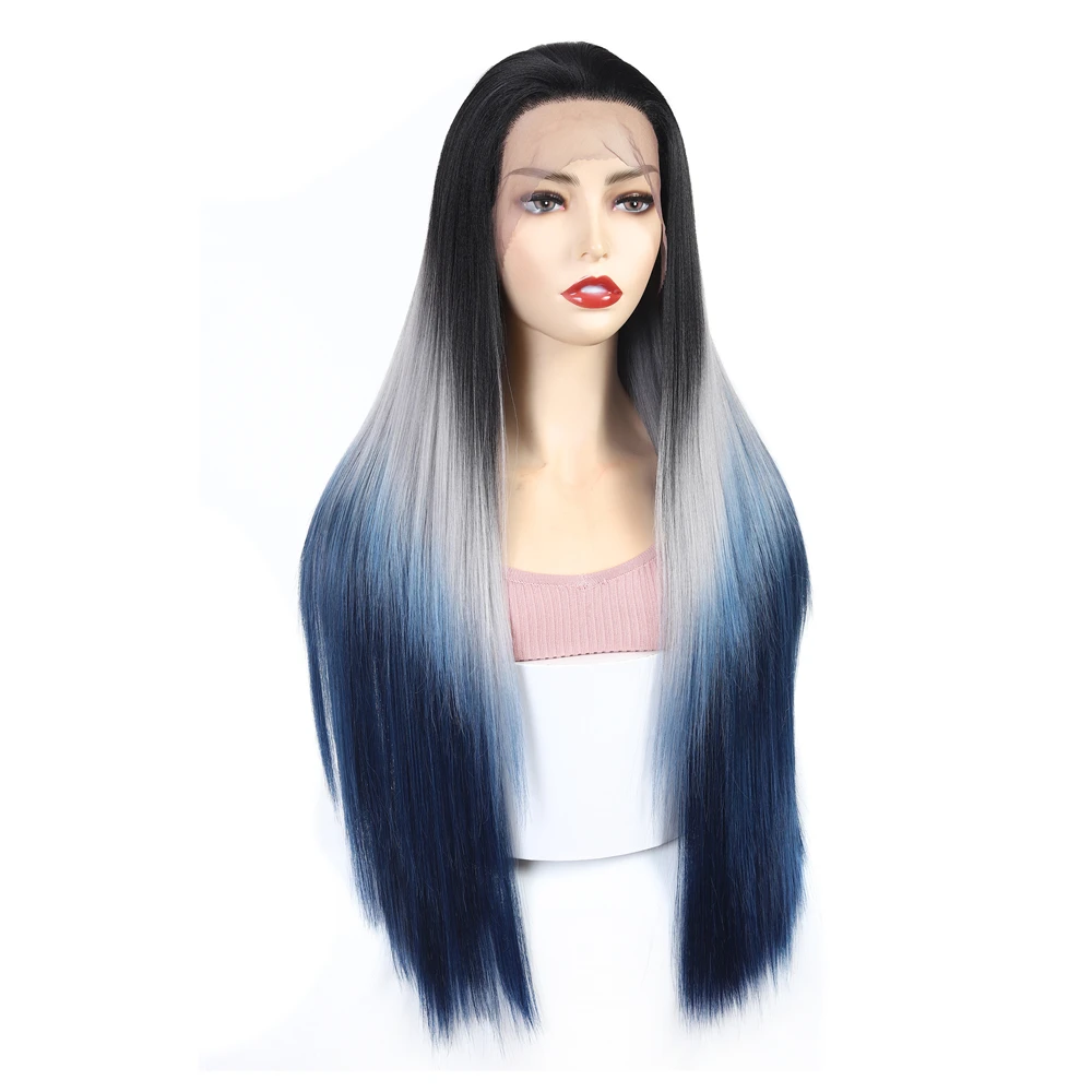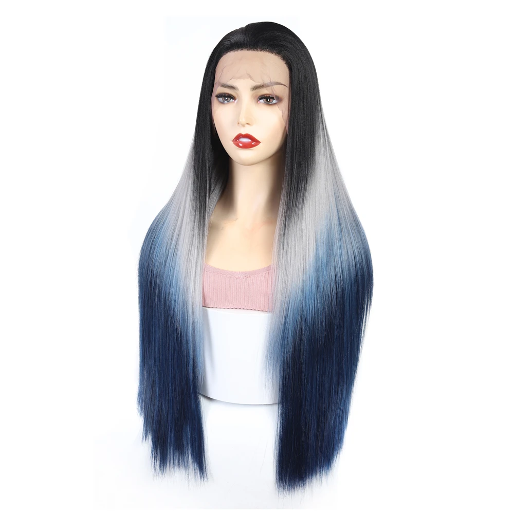 Женский длинный синтетический парик, коричневый, серый, синий, длинный