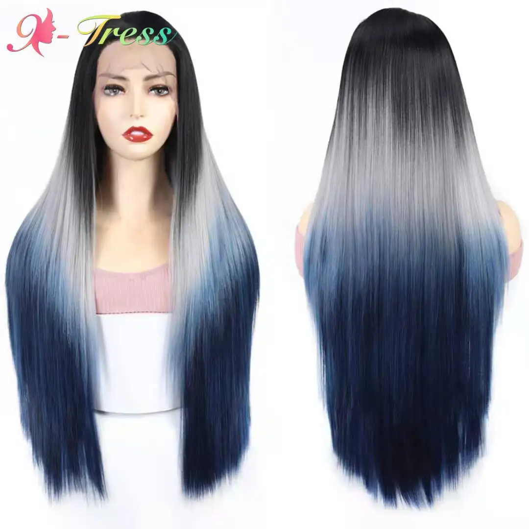 Длинные прямые парики 13x4 на фронтальной сетке для женщин X-TRESS ...