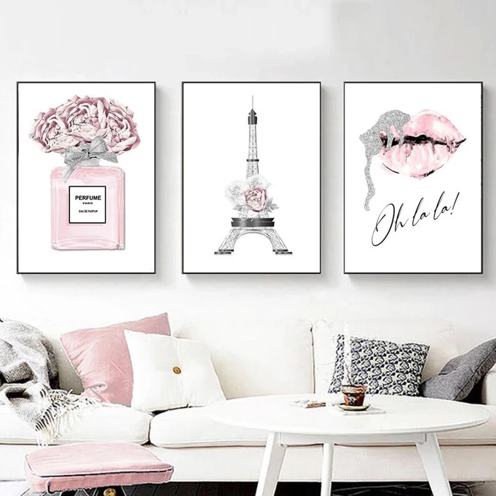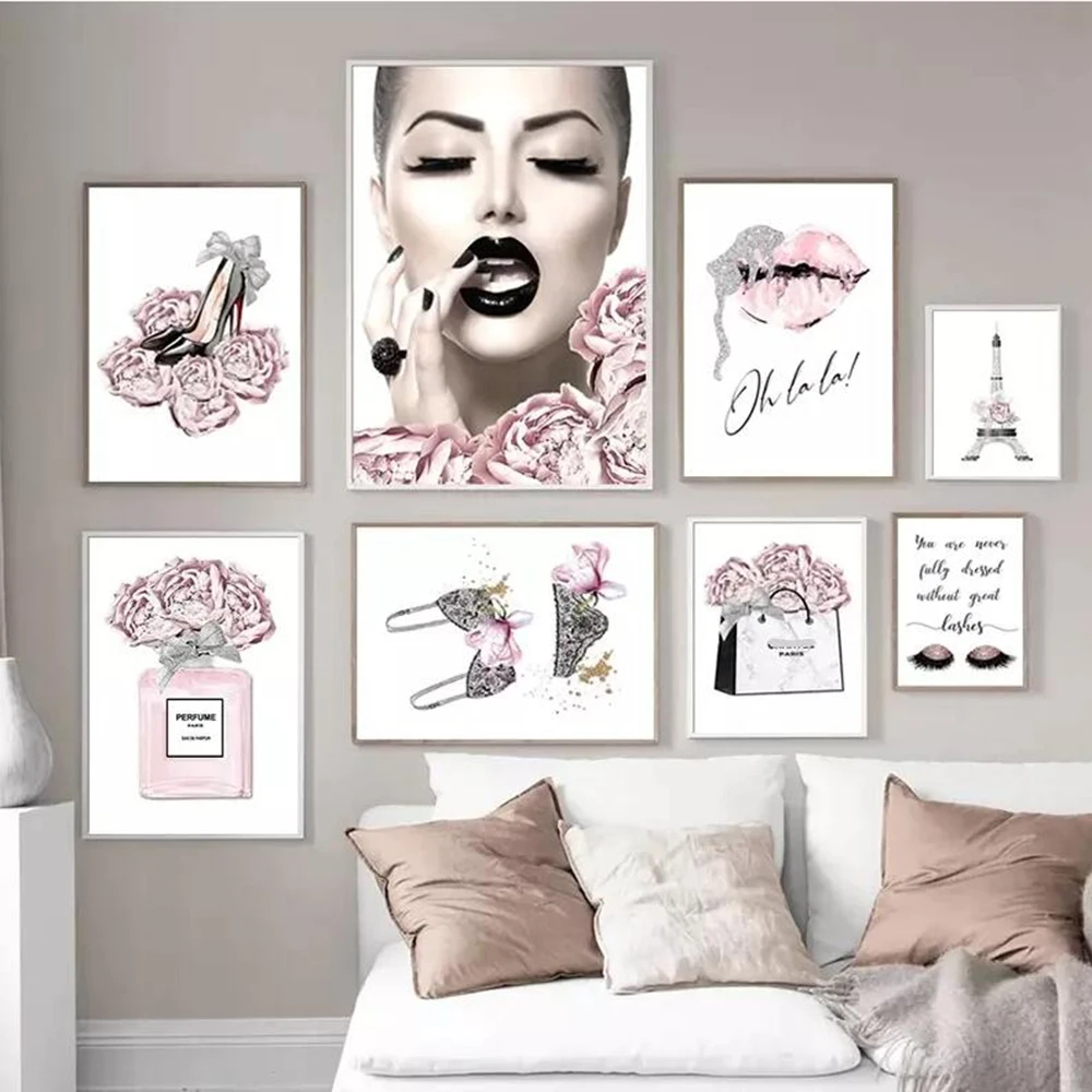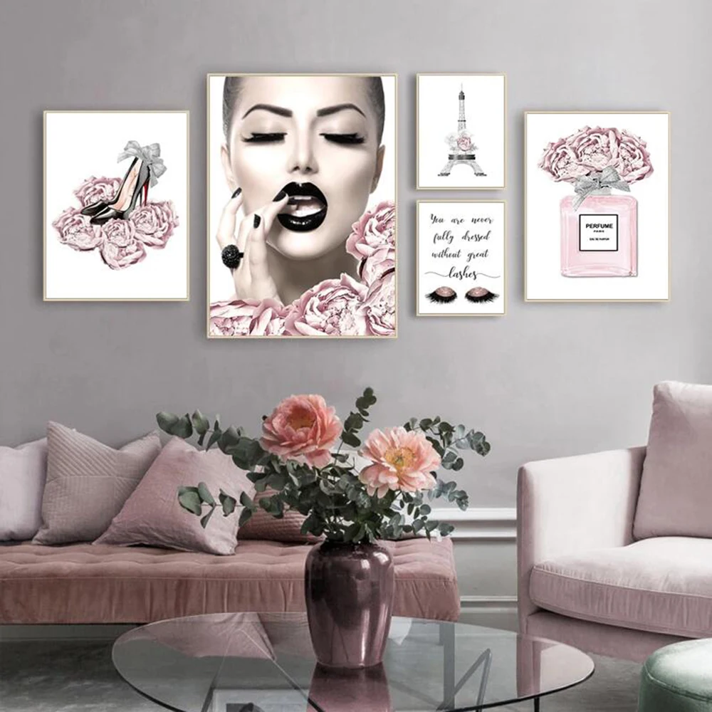 Алмазная картина Стразы с розовыми цветами, модная женская картина, Серебряные Губы, макияж, вышивка, искусство, картина на стену, современная девушка
