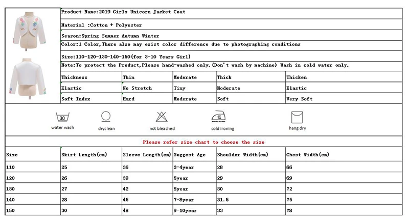 Новая верхняя одежда и пальто с длинными рукавами для детей от 3 до 12Y Одежда для девочек; Сезон осень; Цвет Белый розовое шерстяное пальто для девочек с длинным рукавом Детский комплект для Единорог куртка