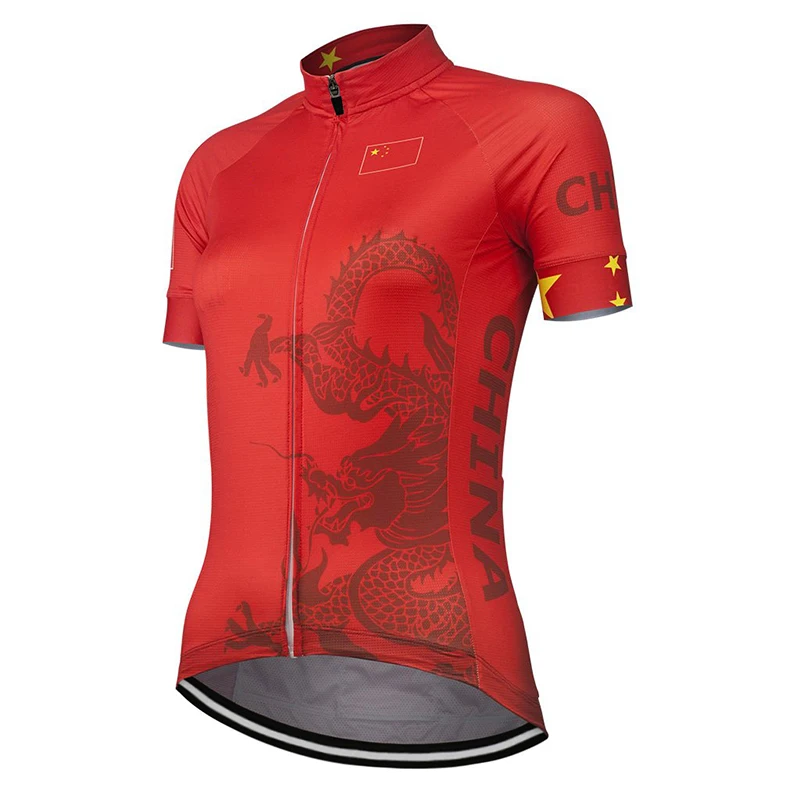 Новинка 2021, женская футболка для велоспорта китайской команды, одежда для гоночных команд по велосипеду, красные топы, дышащая велосипедная одежда