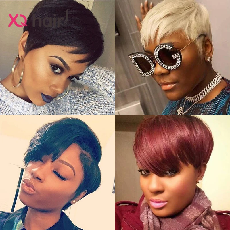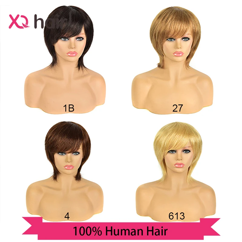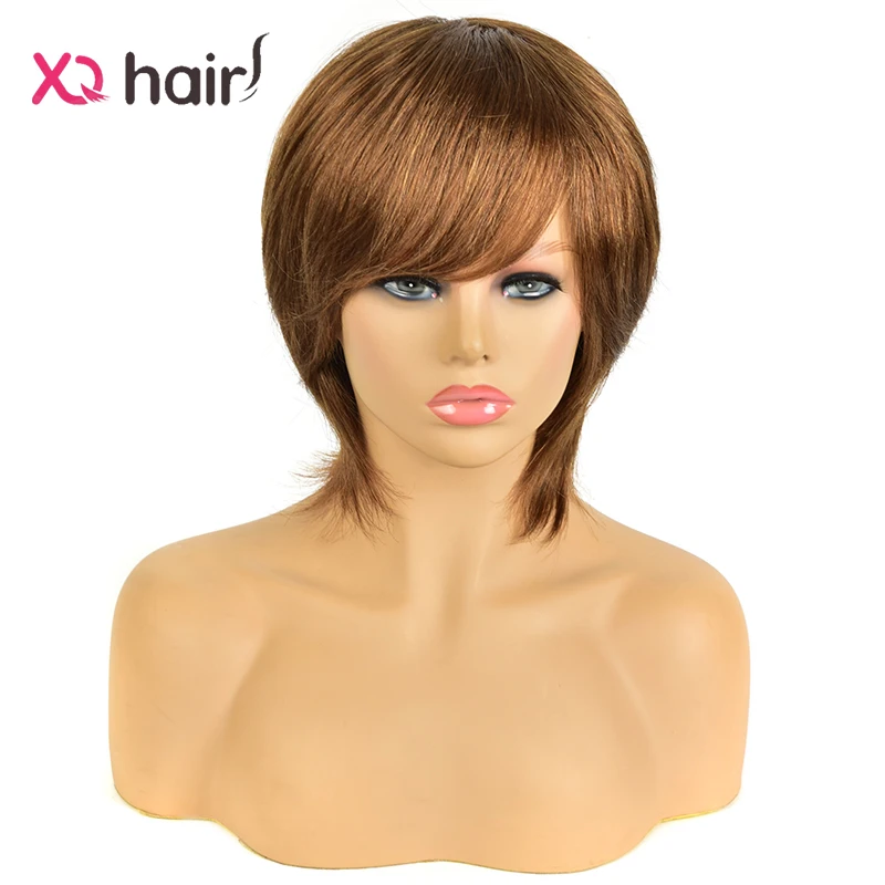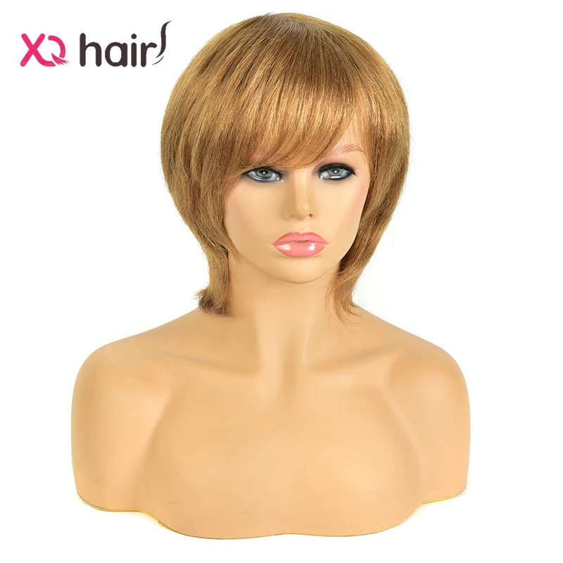 XQ волосы парики из натуральных волос прямые несекущиеся бразильские вьющиеся волосы Remy полный кофейных капсул Nespresso парик человеческих волос Короткие парики из человеческих волос для Для женщин Мёд блондинка