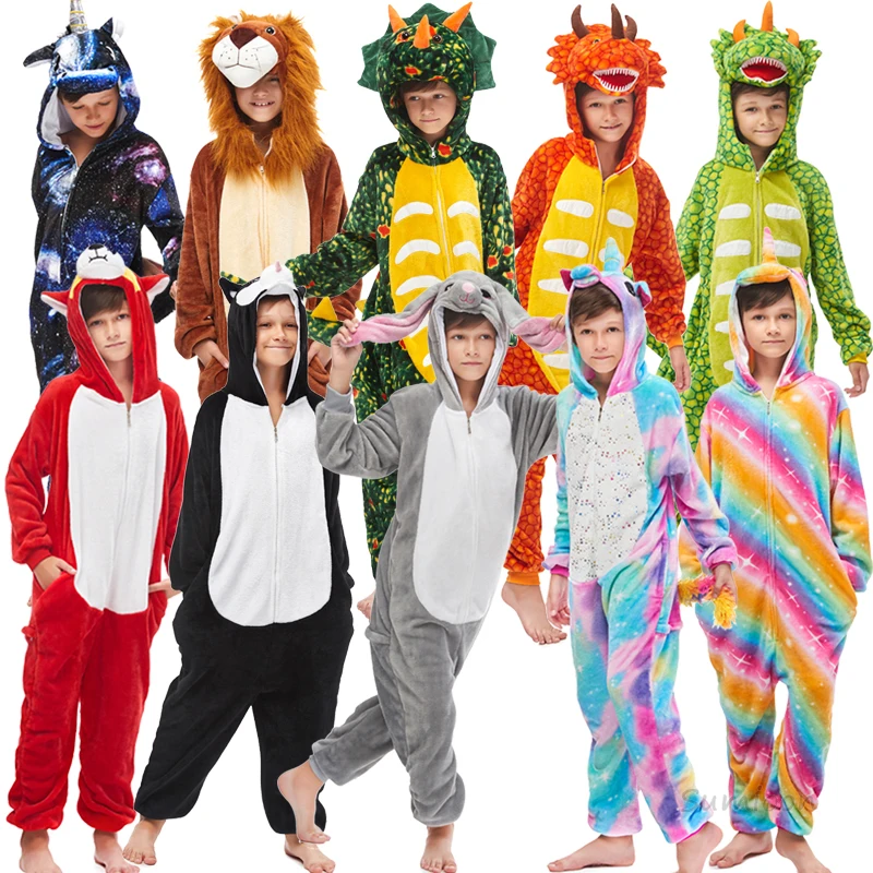 Детские зимние фланелевые пижамы для мальчиков кигуруми в виде живо...