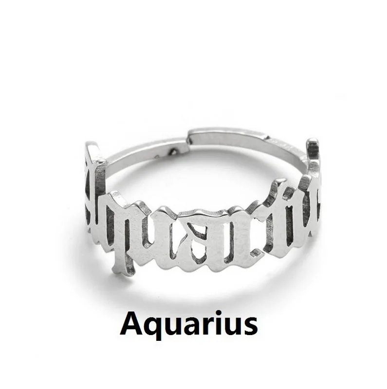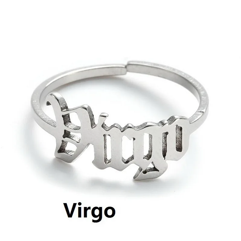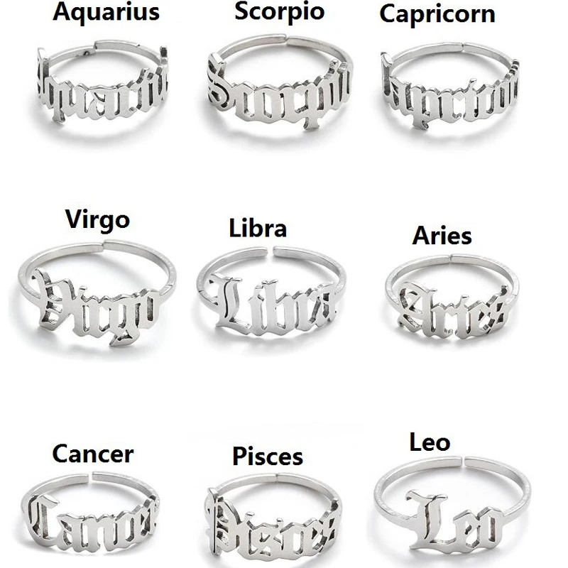 Rinhoo Нержавеющаясталь зодиака кольца для мужчин и женщин сумки из натуральной кожи Leo Овен рыбы Регулируемые кольца 12 кольцо созвездия Ювелирное Украшение на день рождения