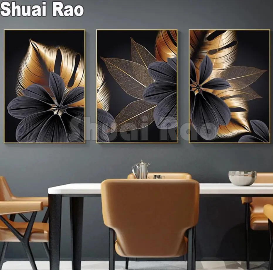 Черное Золотое растение, лист, алмазная живопись, Современный домашний декор, абстрактная настенная живопись, Скандинавская картина для украшения гостиной