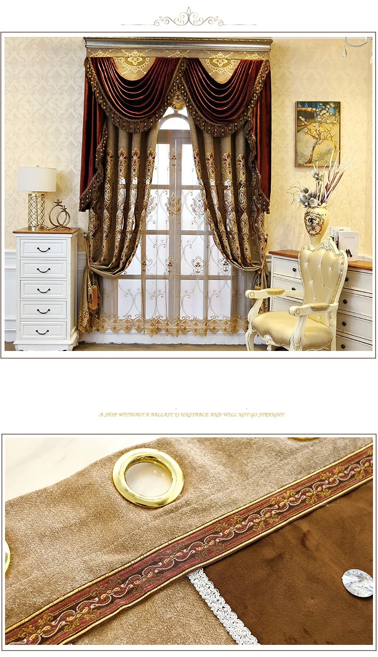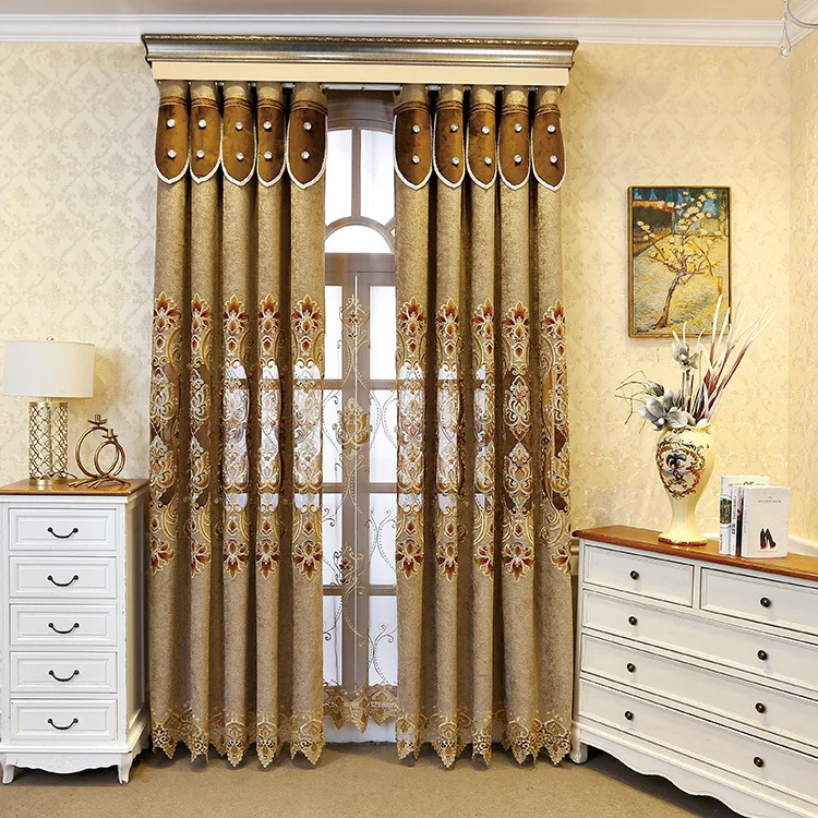 Шторы кофейного цвета в европейском стиле с вышивкой, для гостиной,...
