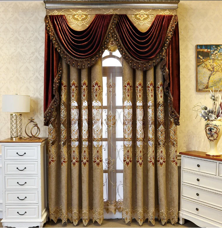 Жаккардовая ткань, королевская Роскошная вышивка, затемняющие шторы...