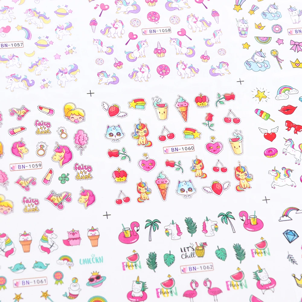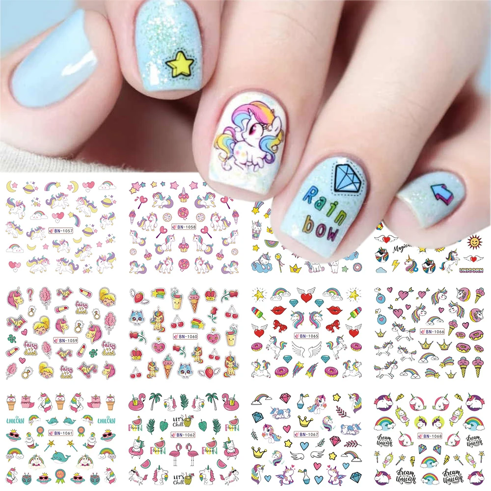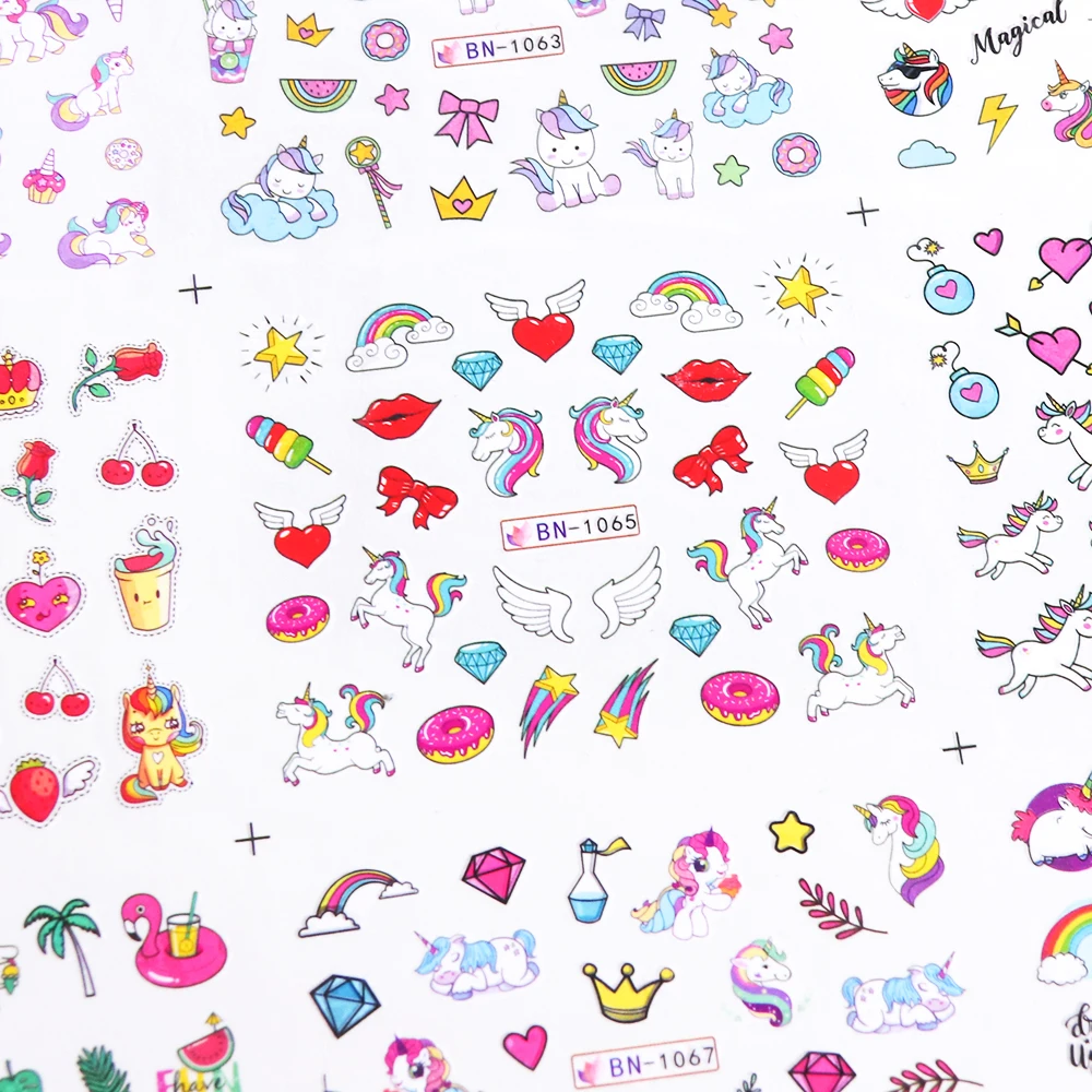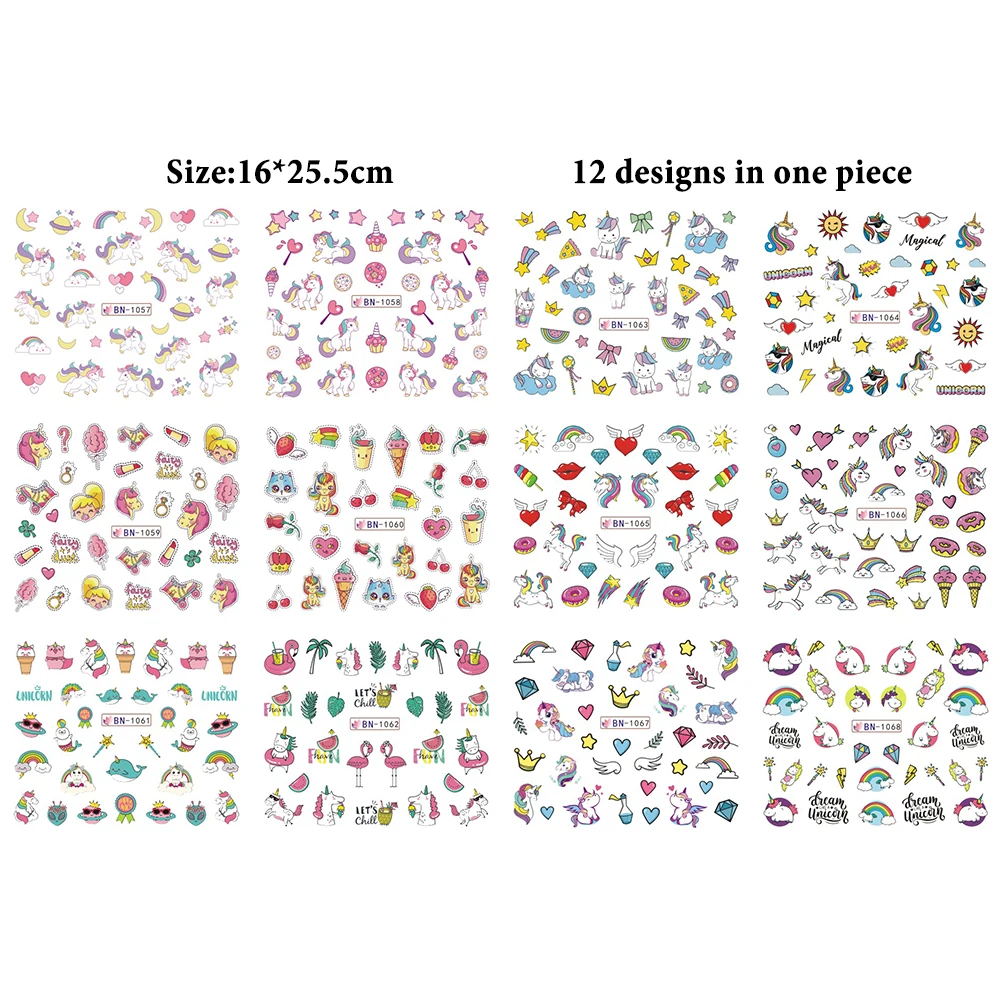 12 шт Наклейки на ногти Розовая лошадка единорог Слайдеры для ногтей Милые Мульт Фламинго Стикеры для маникюра Водные Наклейки для маникюра дизайн для ногтей GLBN1057-1068