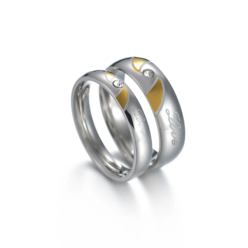Золотистые кольца из нержавеющей стали с кристаллами для влюбленных...