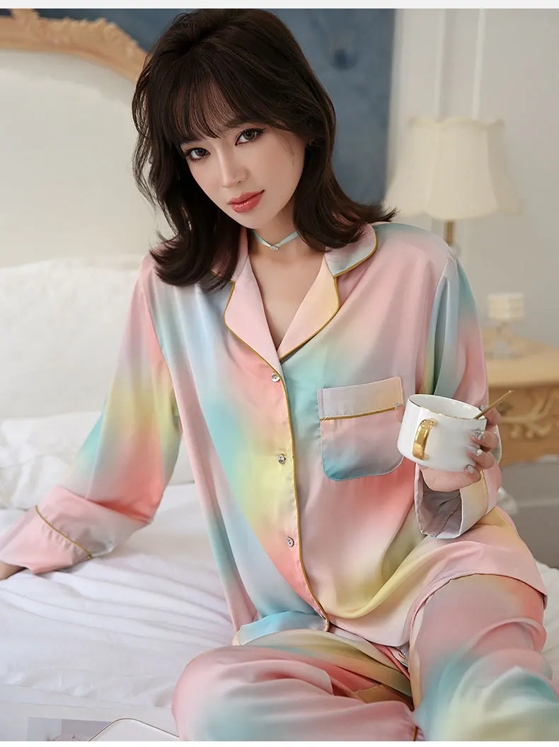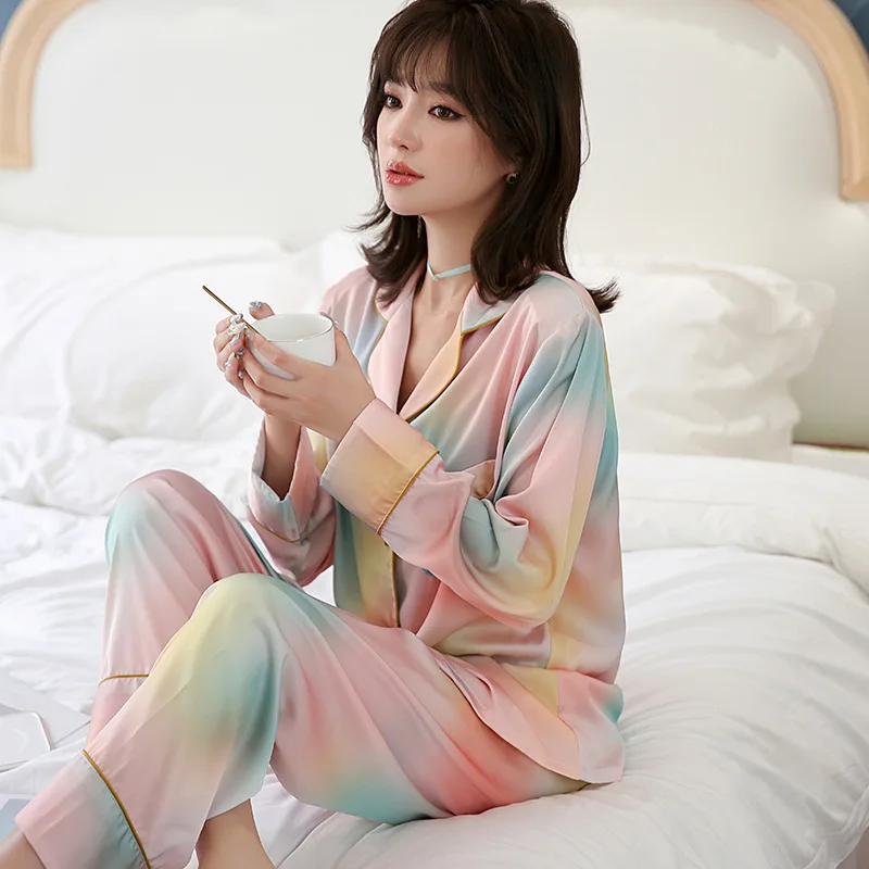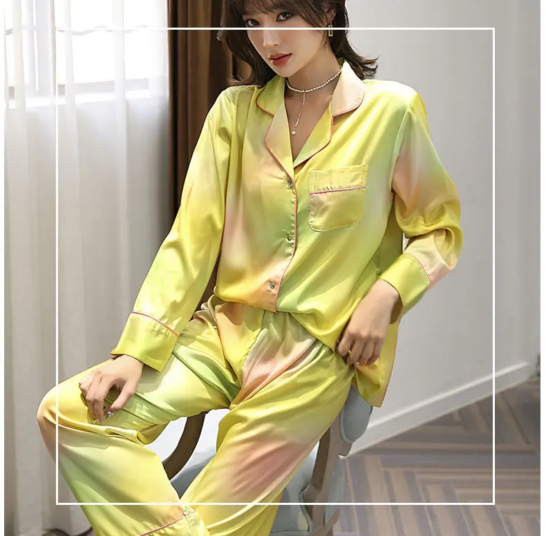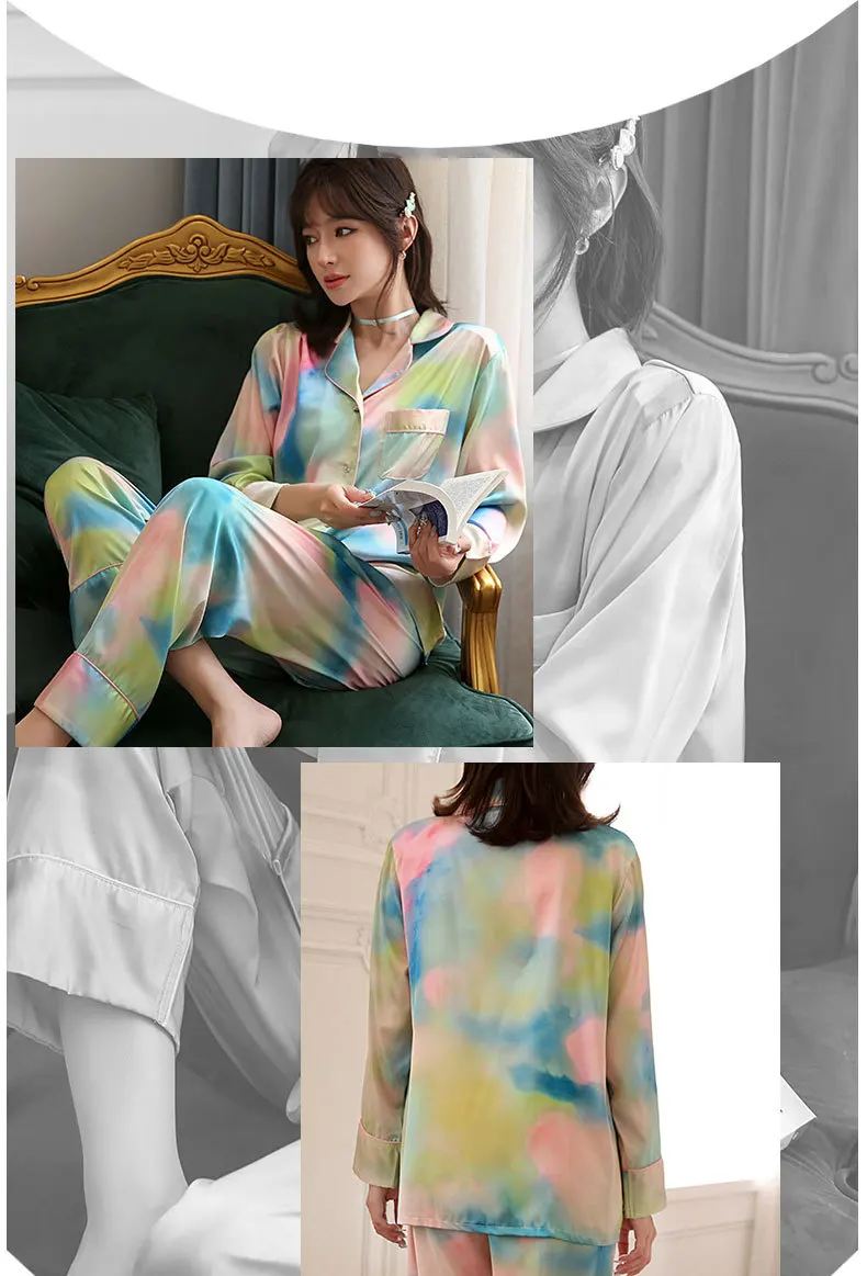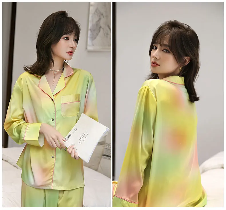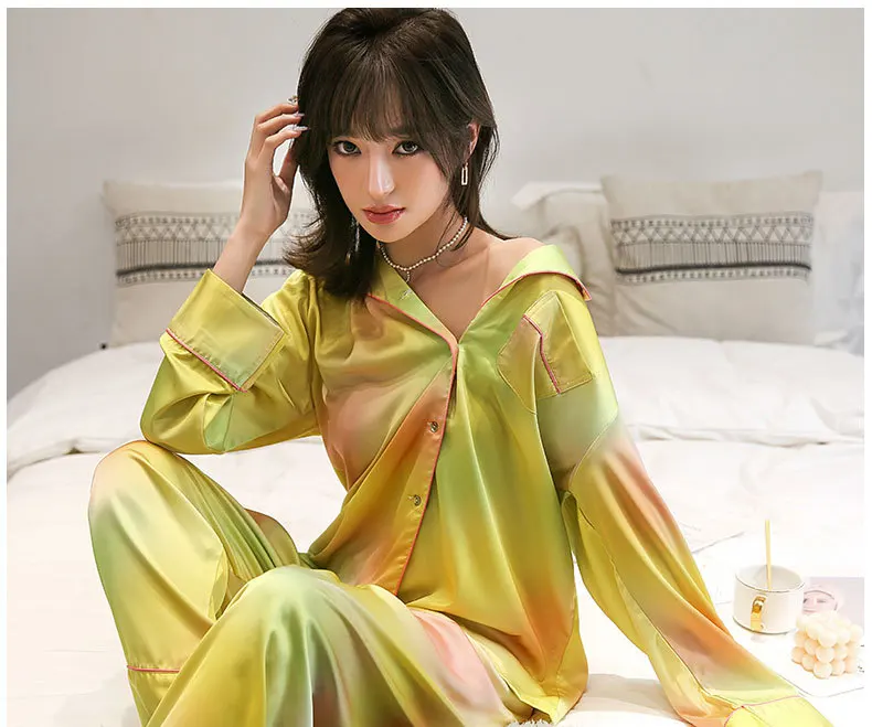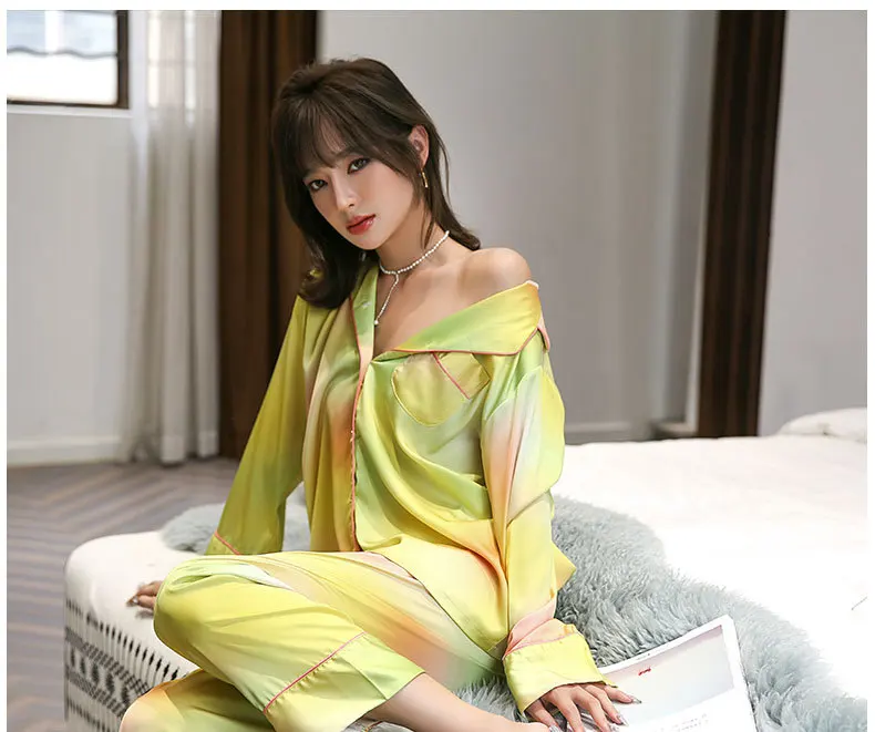 Комплект пижамный женский атласный из 2 предметов, рубашка и брюки с шелковистым принтом, мягкая Пижама, Повседневная Домашняя одежда, интимное белье, новинка 2021