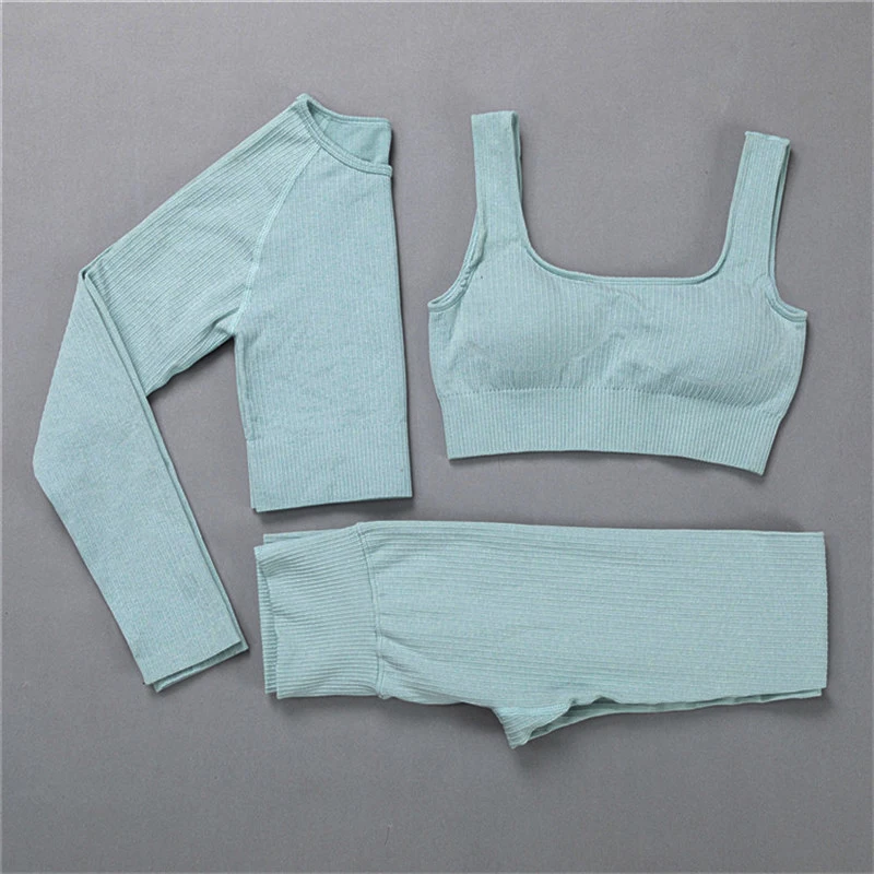 Комплект Для Йоги Женский бесшовный, укороченный Топ с длинным рукавом и брюки с завышенной талией, леггинсы для фитнеса, спортивный бюстгальтер, 8 цветов, 23 шт.