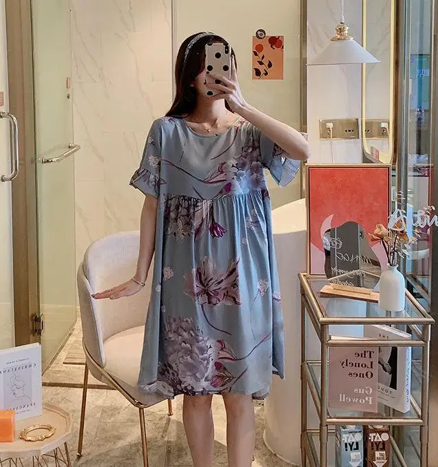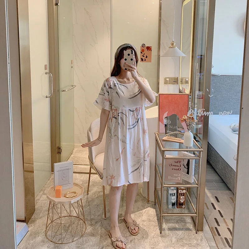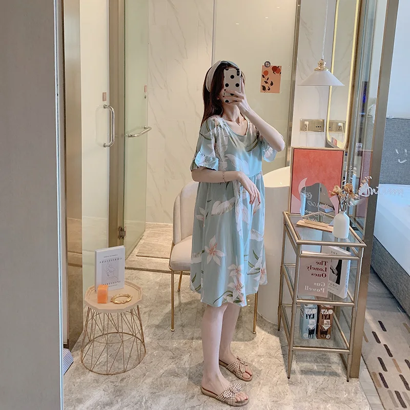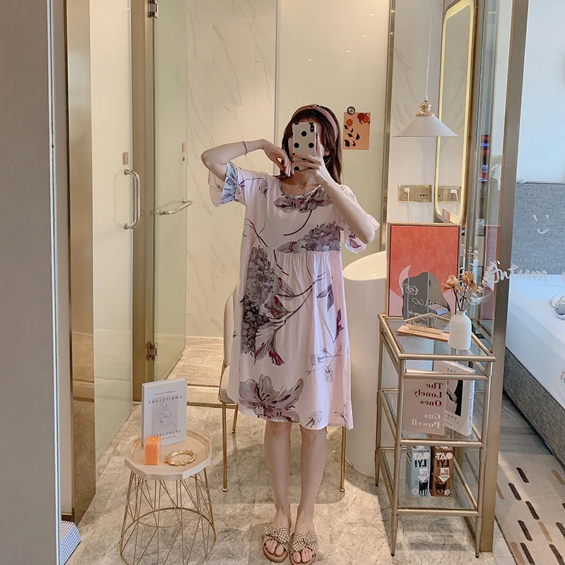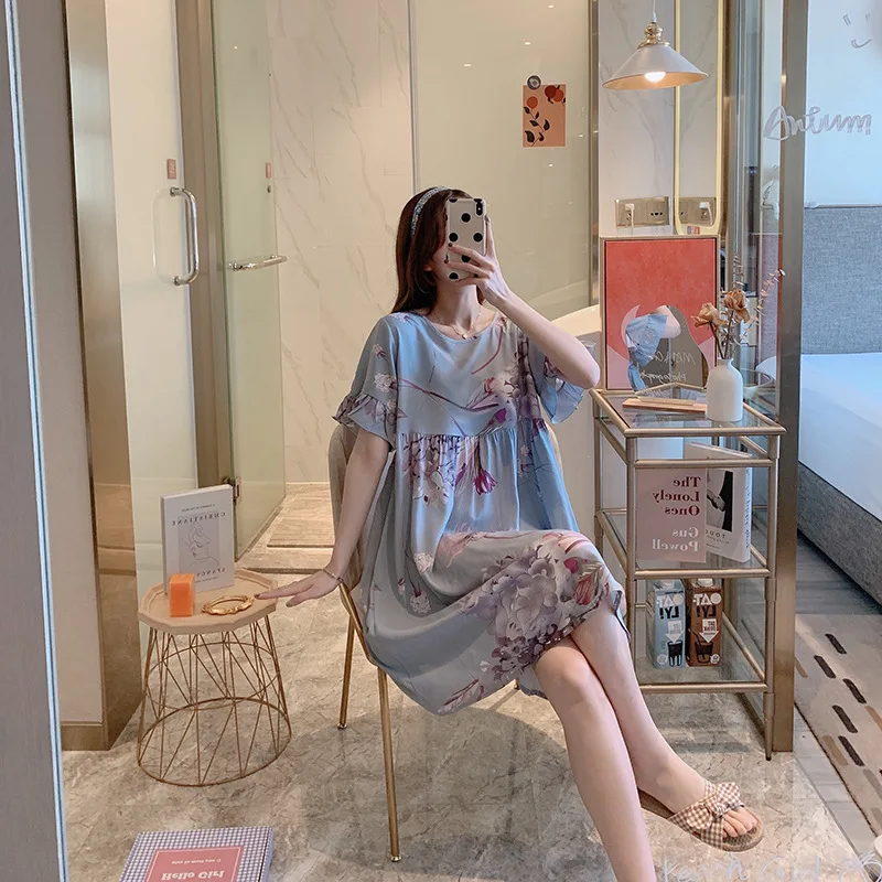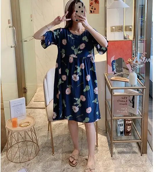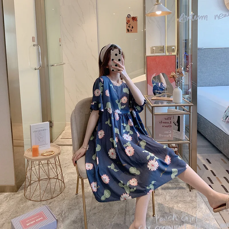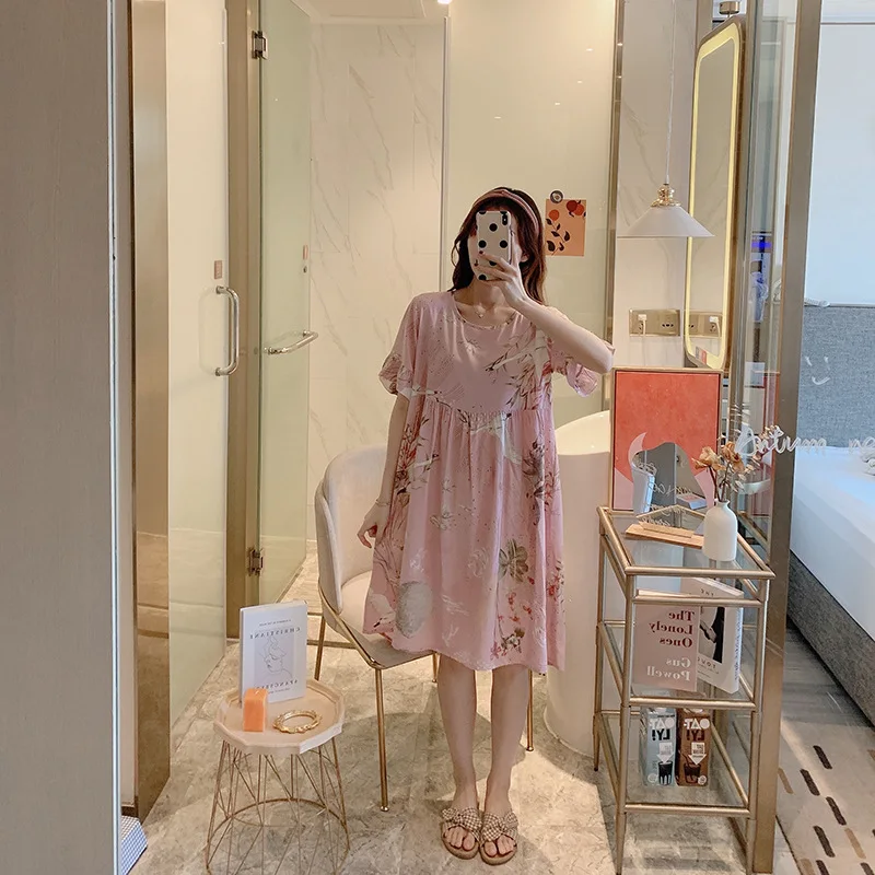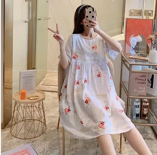 Ночная рубашка женская с цветочным принтом, Хлопковая сорочка с коротким рукавом, интимное нижнее белье, короткая Домашняя одежда, одежда для сна, лето