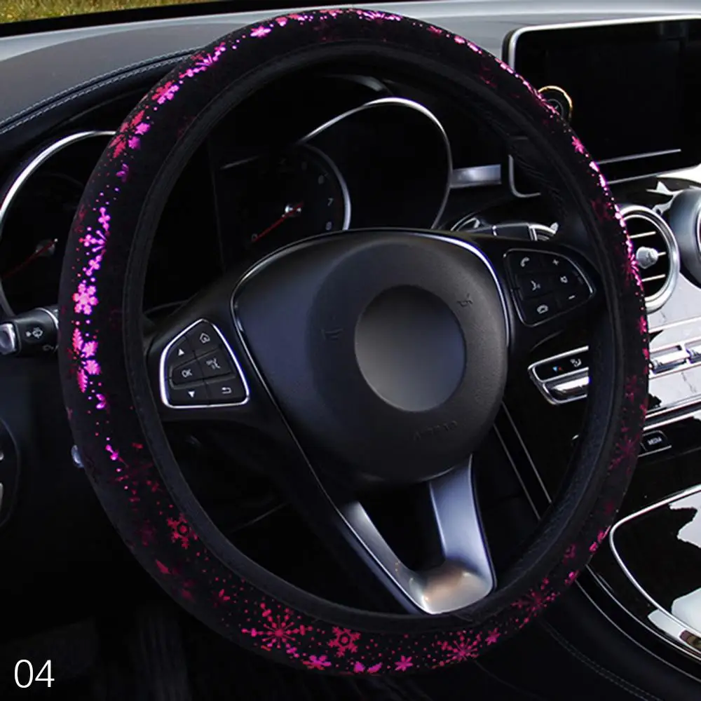 Популярный универсальный чехол рулевого колеса автомобиля с рисунком снежинки, с рисунком снежинки, для женщин и девочек, 37-38 см