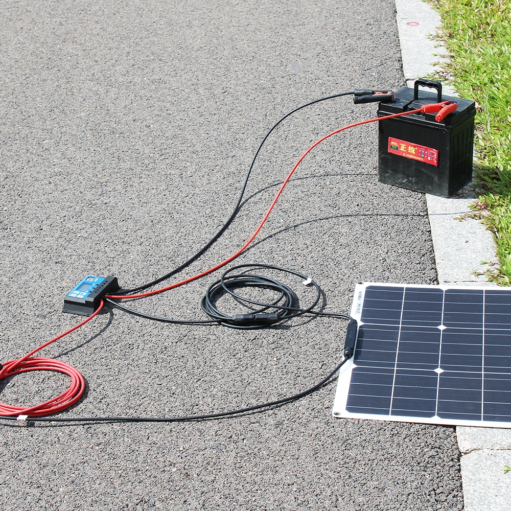 ▶100 Вт Гибкая солнечная панель * 1▶10A 12V/24V солнечный регулятор зарядное устройство * 1▶Кабель 39,37 "с зажимами типа крокодил * 1▶118,11 ”Удлинительный кабель * 1