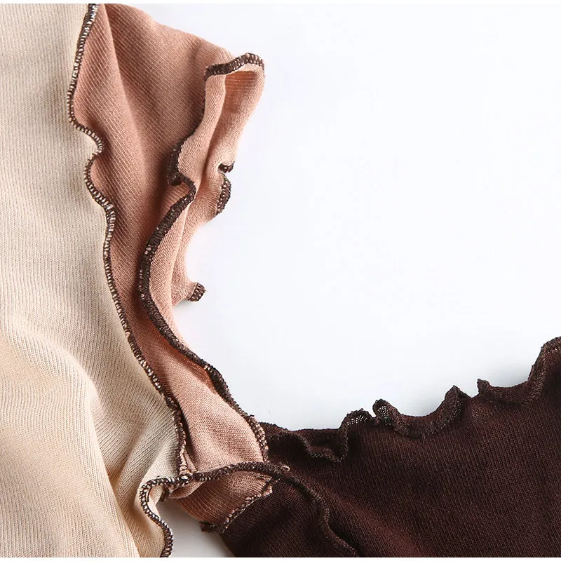 Женские футболки в стиле пэчворк, с оборками, с длинным рукавом, женский укороченный топ, весна-осень 2121, Уличная Повседневная женская футболка