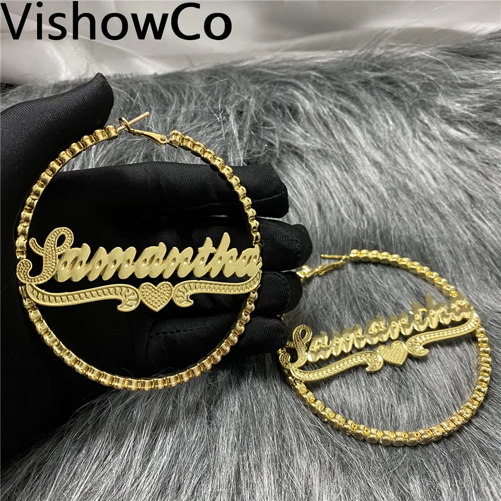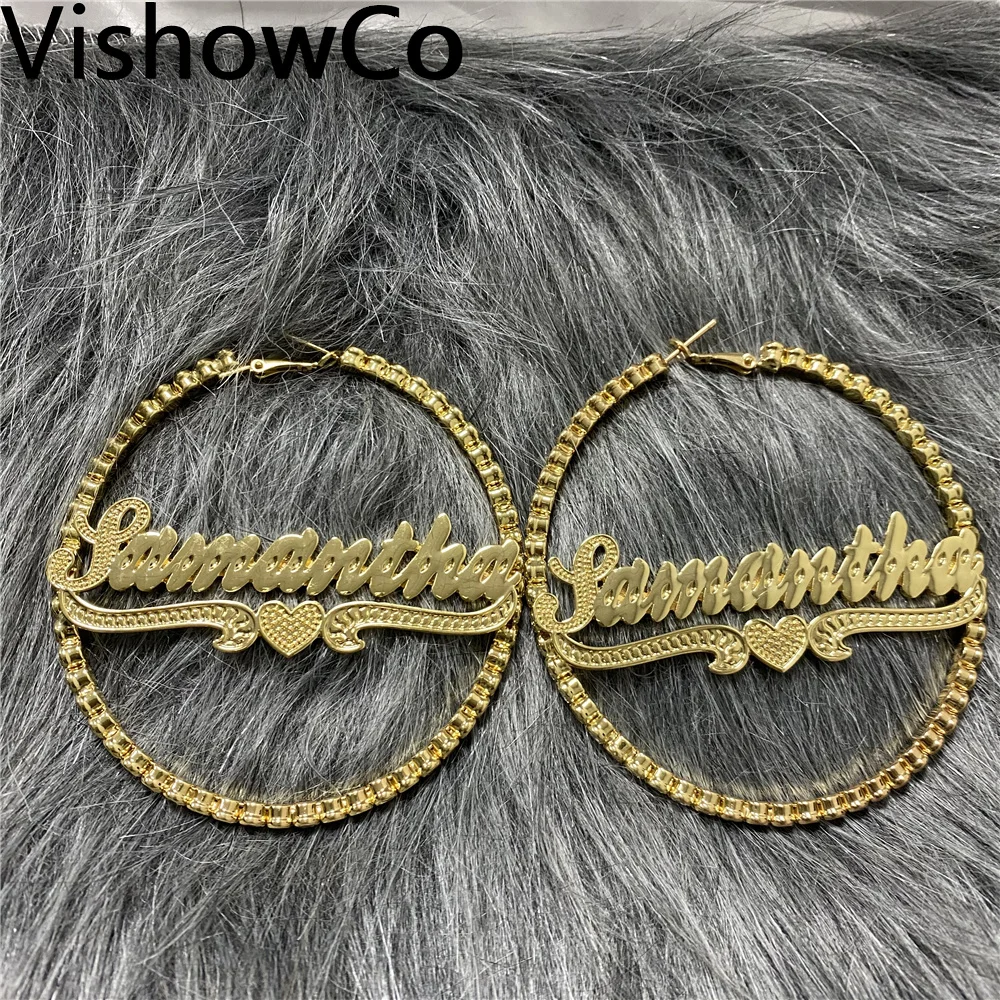Серьги-кольца с индивидуальным именем, позолоченные ювелирные украшения в форме сердца, инициала, 80 мм, 18 к