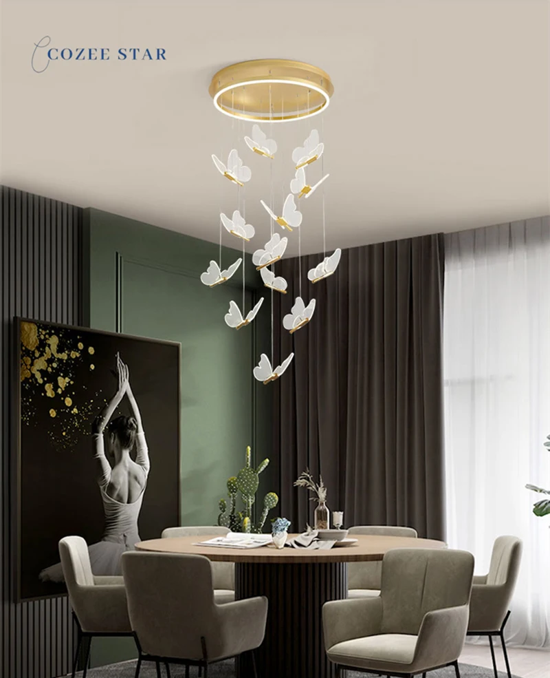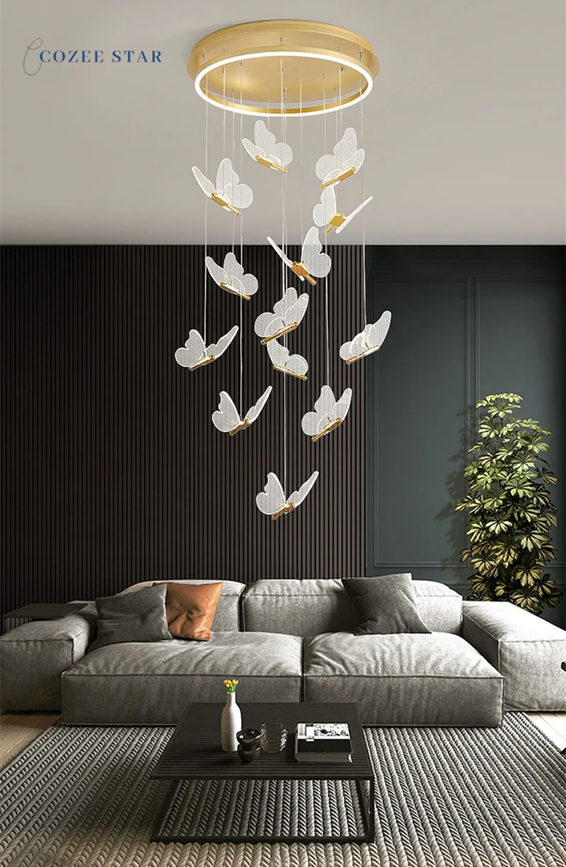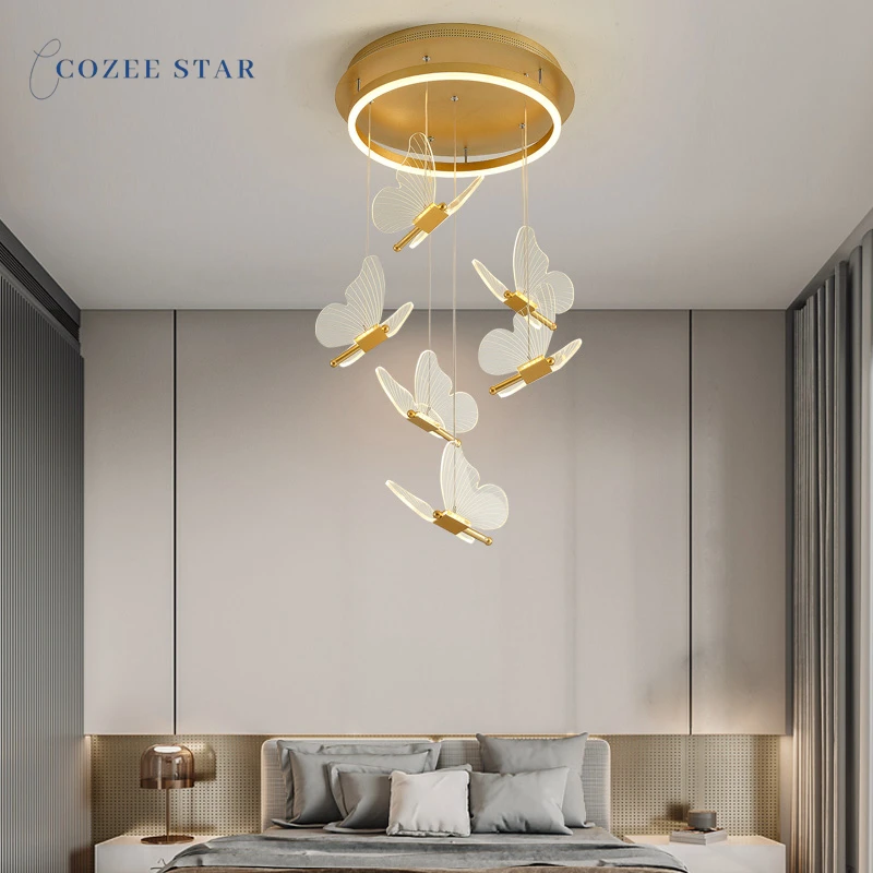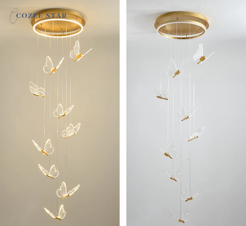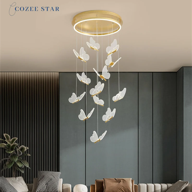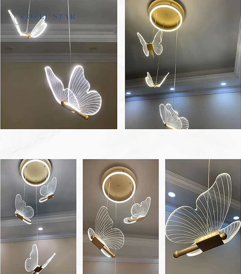 Nordic светодиодный подвесные светильники Современные бабочка акриловый Железный Золотой осветительный прибор Спальня Гостиная лестница в помещении лампы Блеск