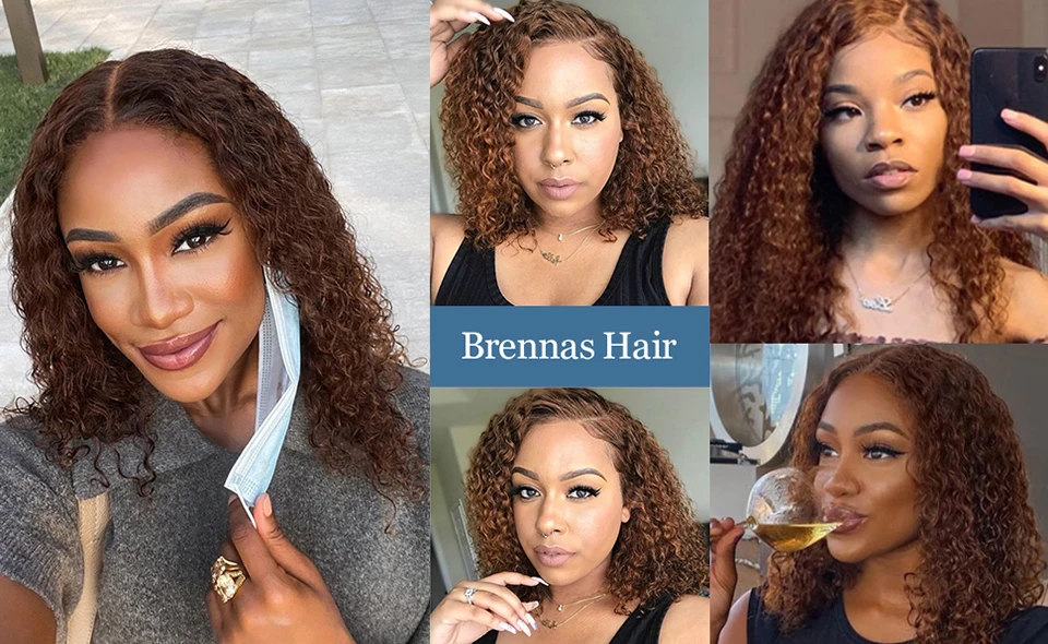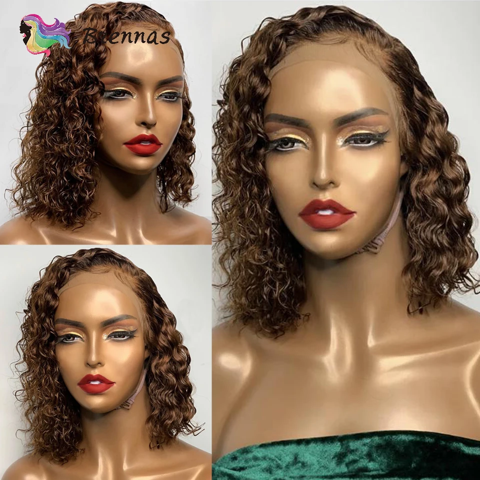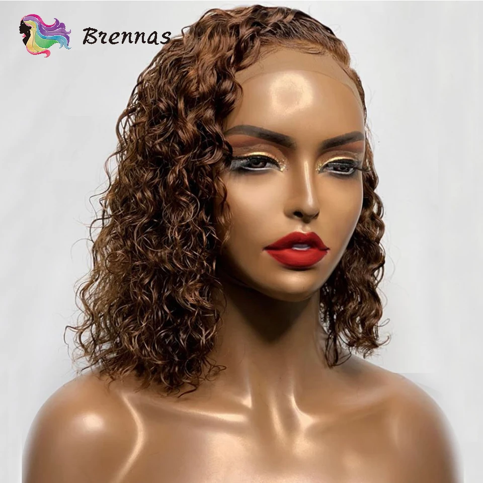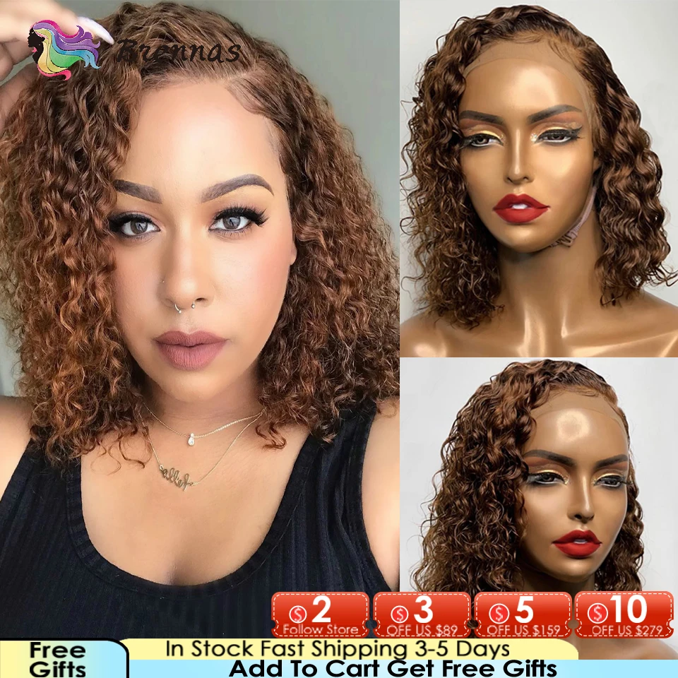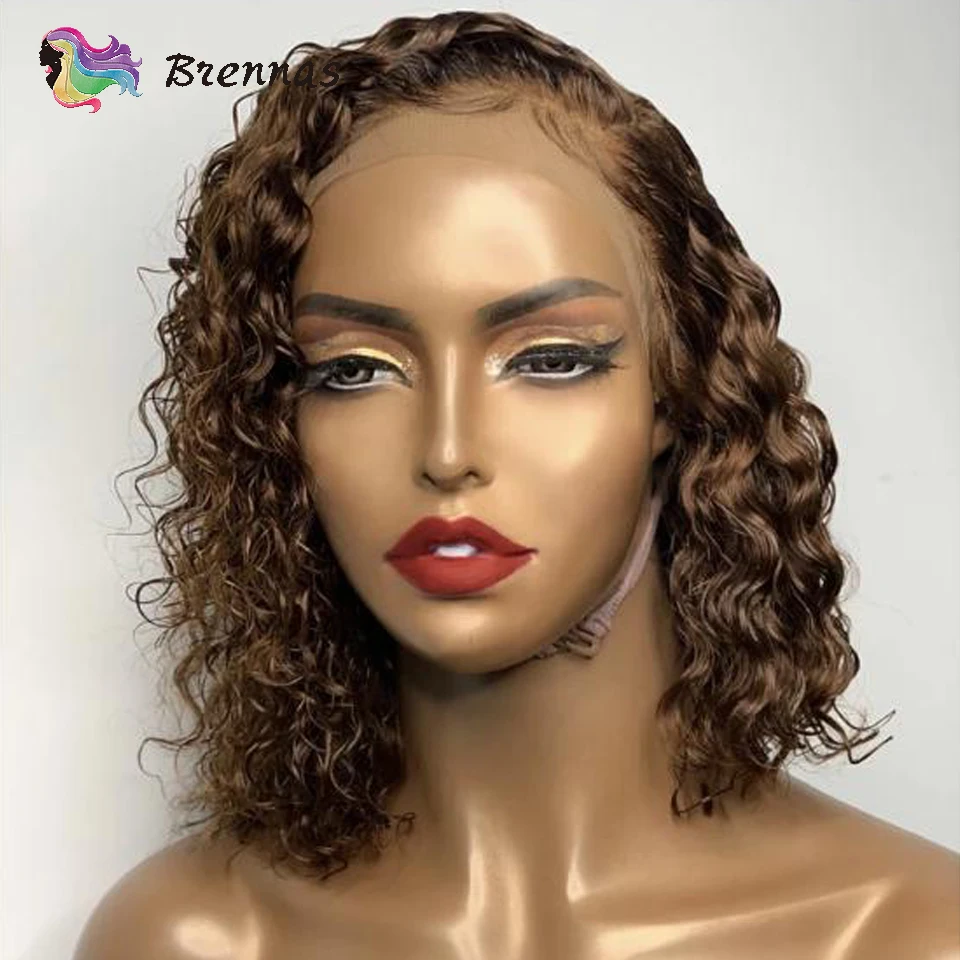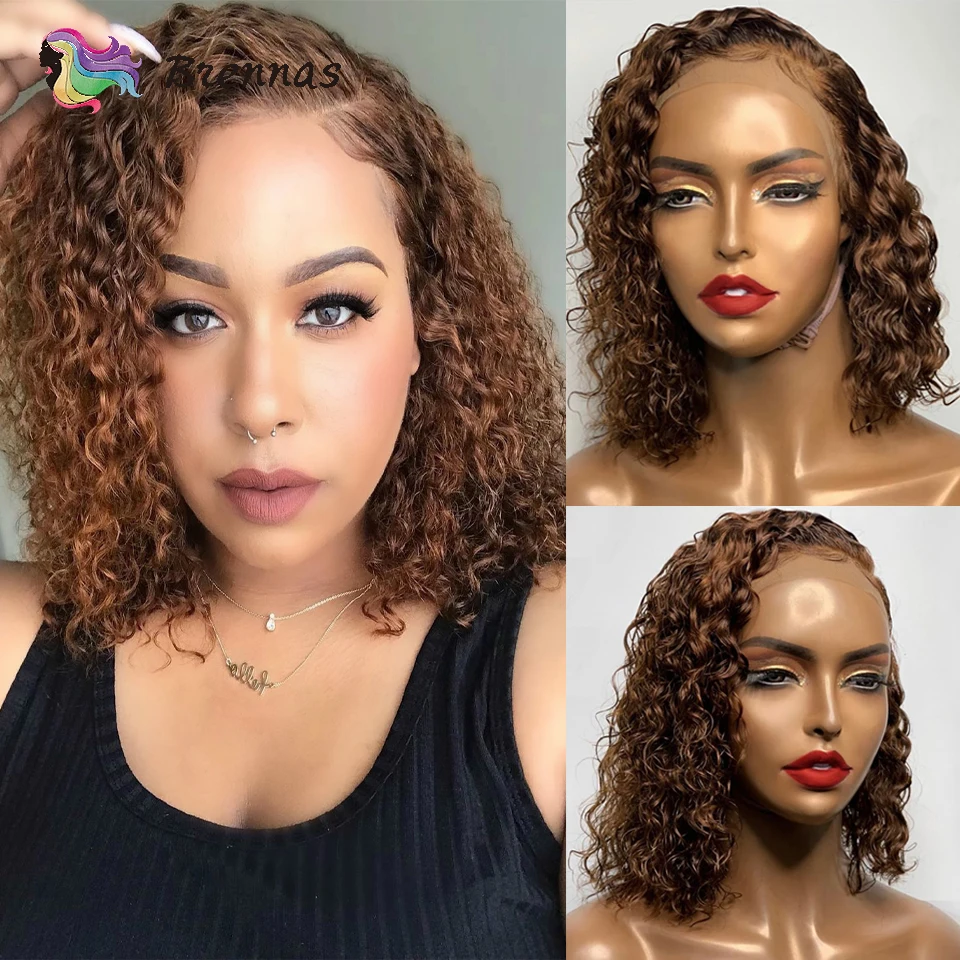 Парик с кудрявым Бобом на шнуровке спереди, коричневый, с глубокими кудрявыми человеческими волосами, парик для черных женщин, предварительно выщипанные бразильские волосы, 13X4 фронтальные парики