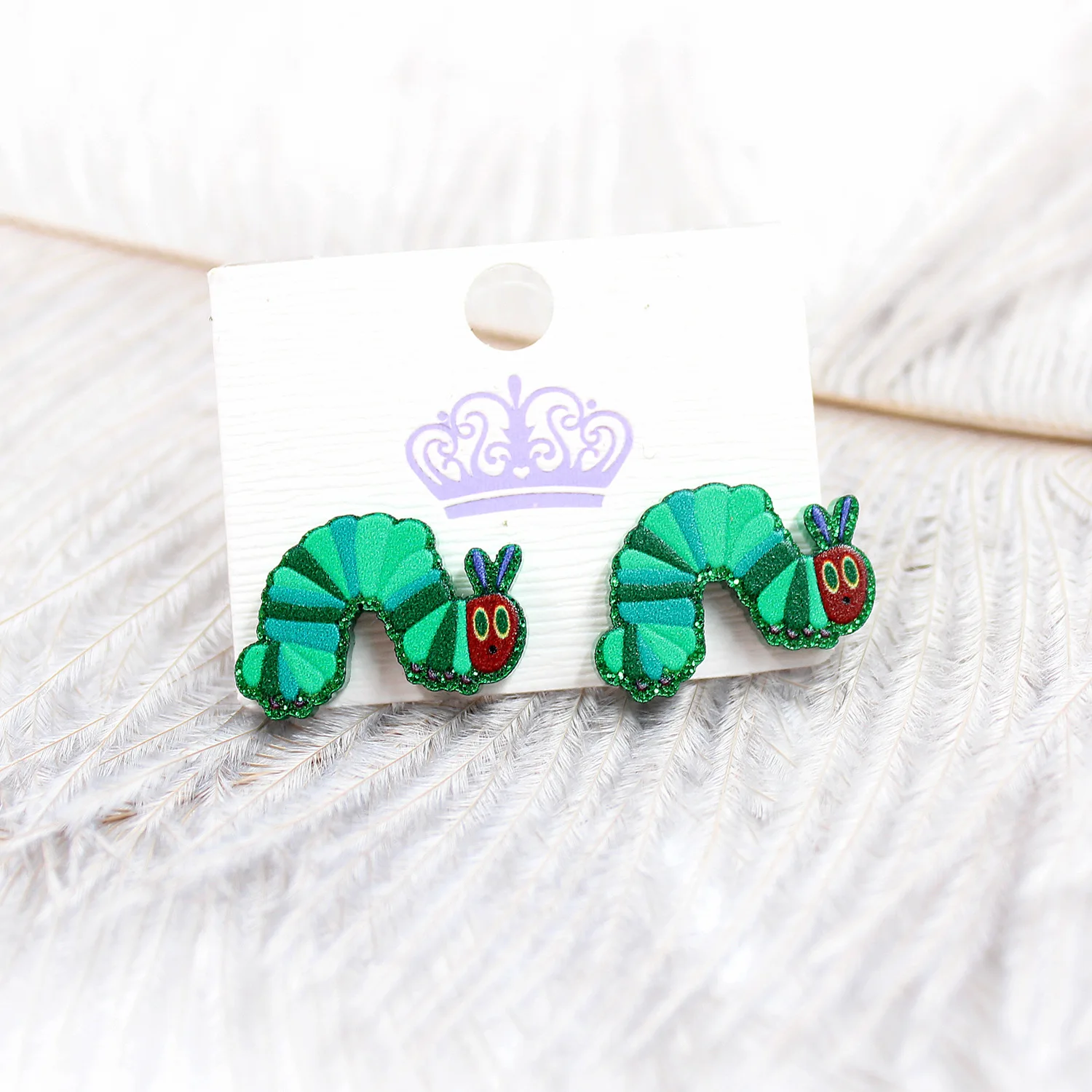Серьги-подвески в виде зеленого гусеницы женские, милая акриловая модель, забавная бижутерия для девушек и женщин